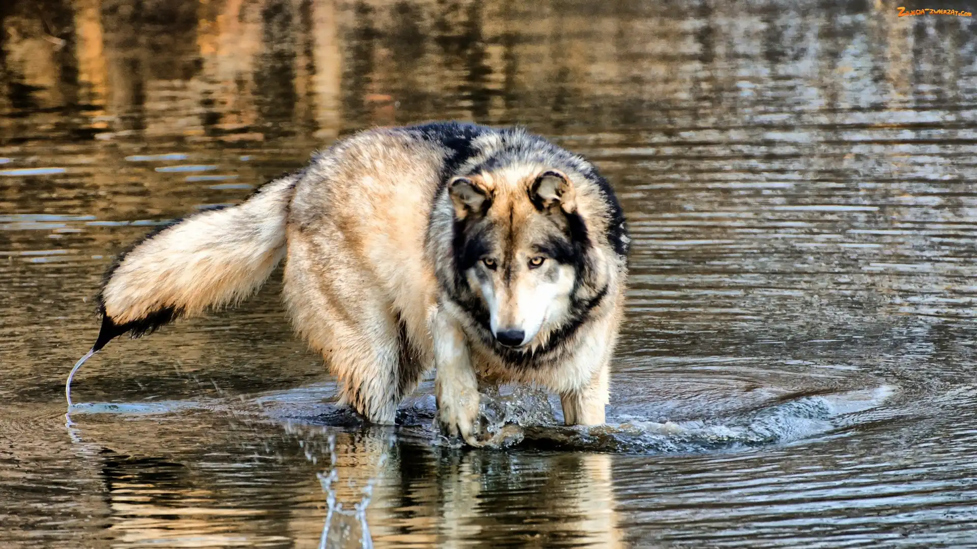 Zdjęcie: Odbicie, Wilk, Rzeka