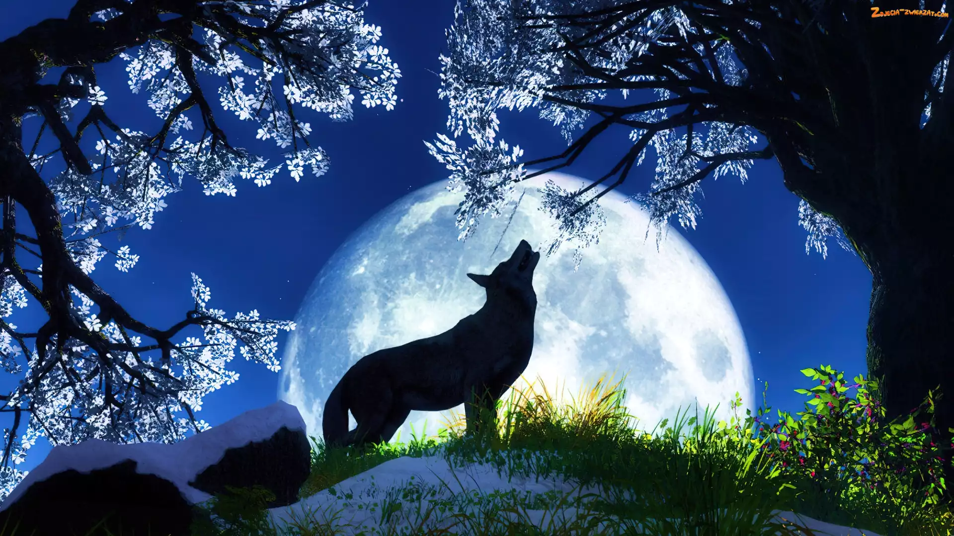 Zdjęcie: Wilk, Noc, Wyjący, Drzewa