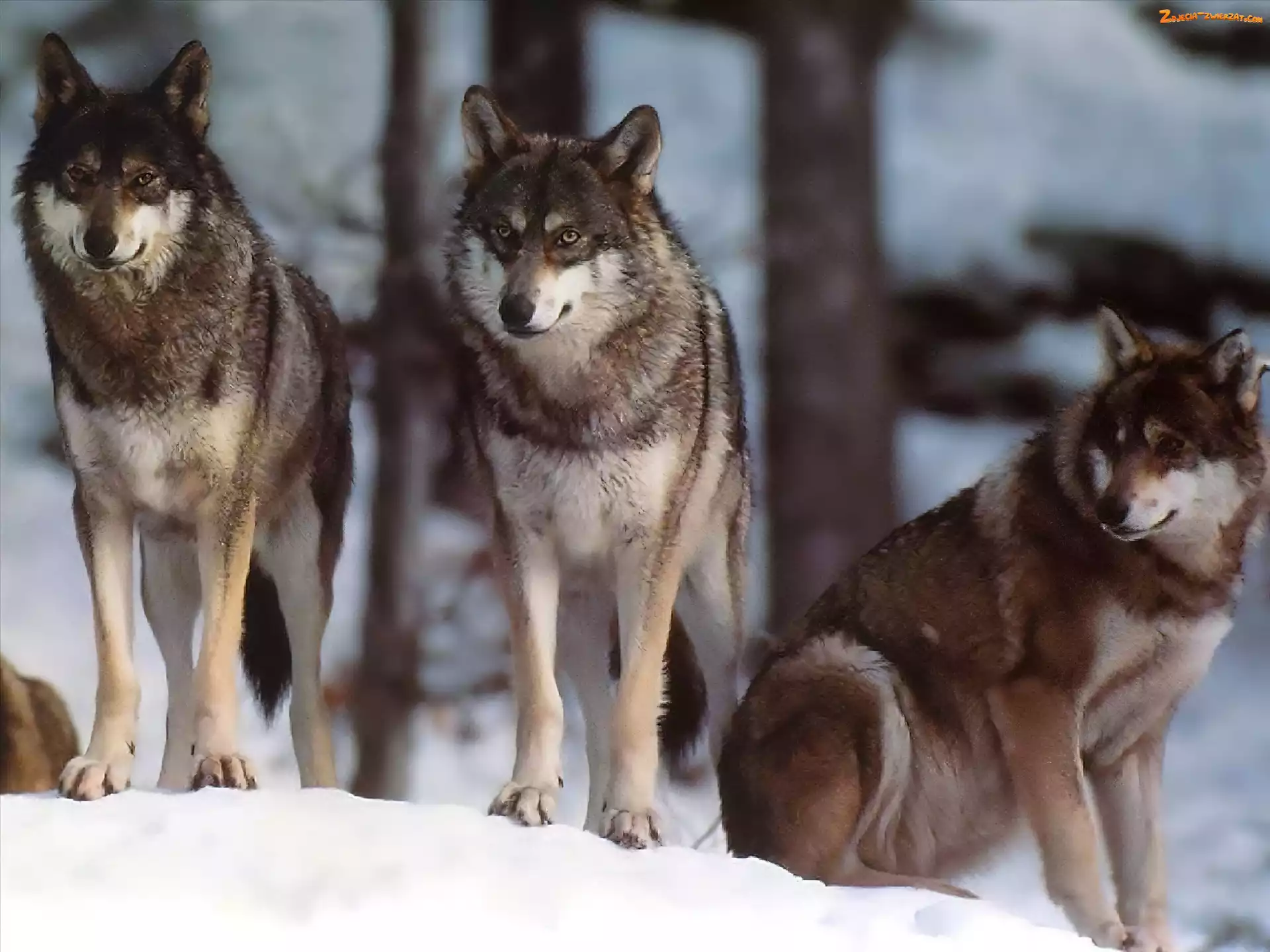 Zdjęcie: Drzewa, Wilki, Śnieg