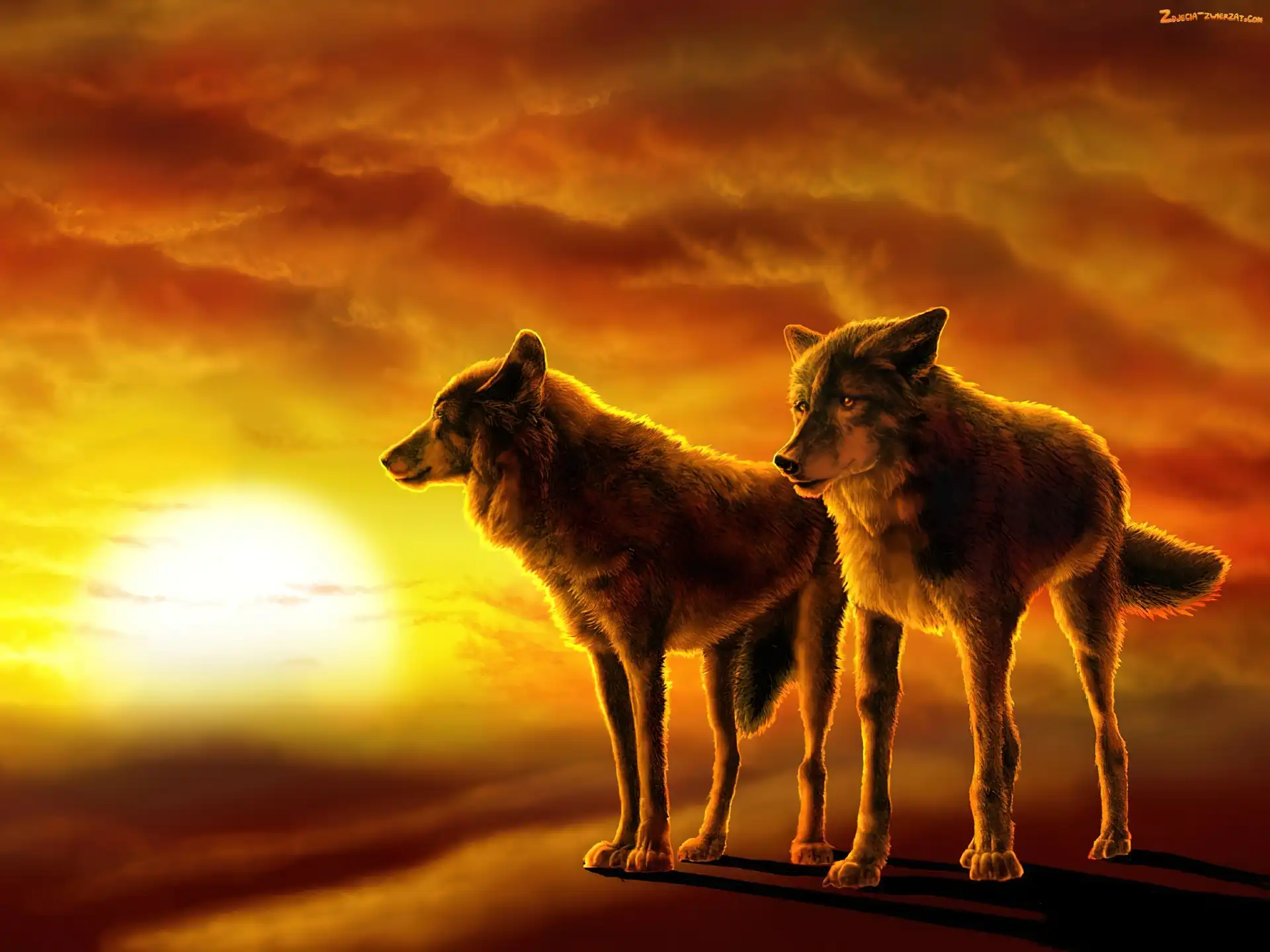 Zdjęcie: Wilki, Słońca, Dwa, Zachód