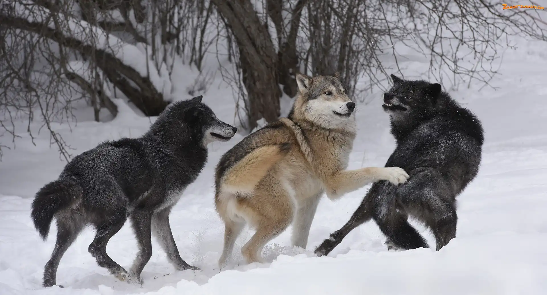 Zdjęcie: Wilki, Śnieg, Trzy, Zima