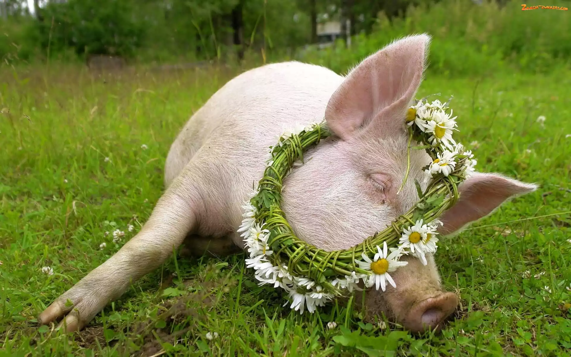 Zdjęcie: Trawa, Świnia, Wianek