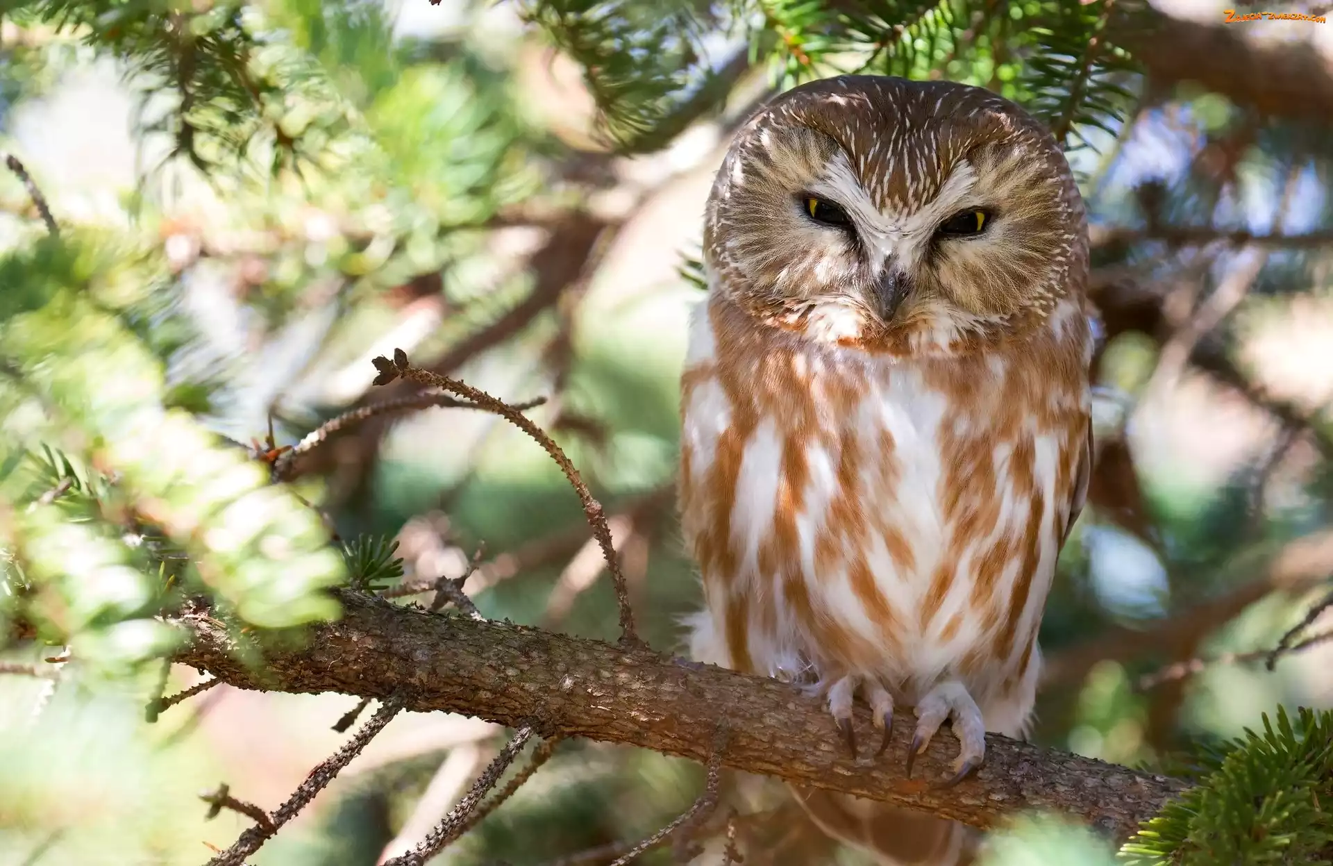 Zdjęcie: Włochatka zwyczajna, Rozmyte tło, Sowa, Drzewo