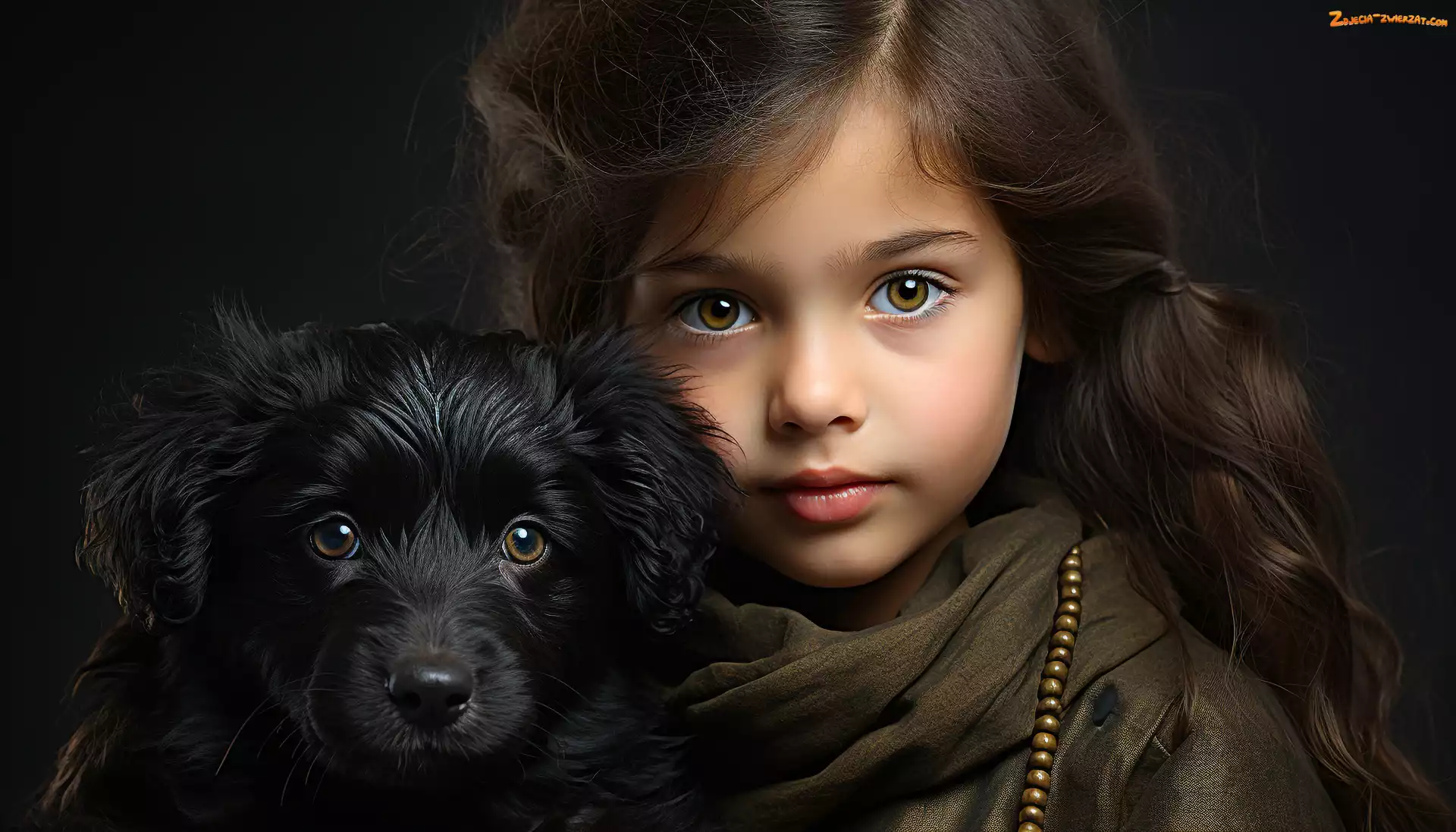 Zdjęcie: Czarny, Włosy, Pies, Dziewczynka, Długie