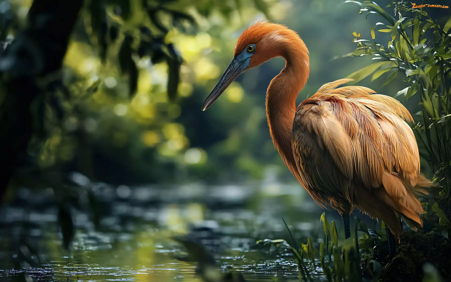 Zdjęcie: Gałęzie, Ptak, Brązowa, Woda, Grafika, Czapla, Liście