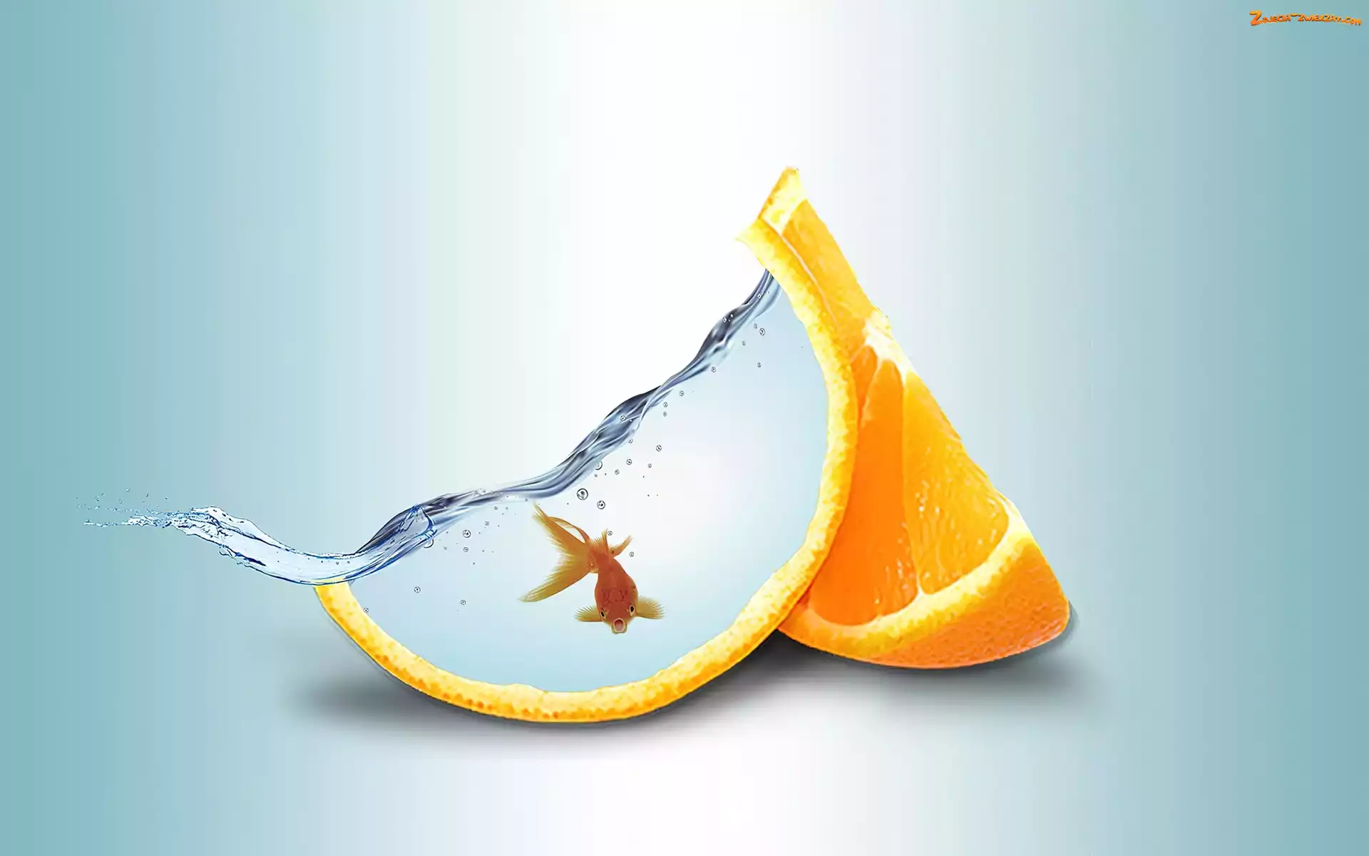 Woda, Pomarańcz, Rybka, Grafika, Welonka