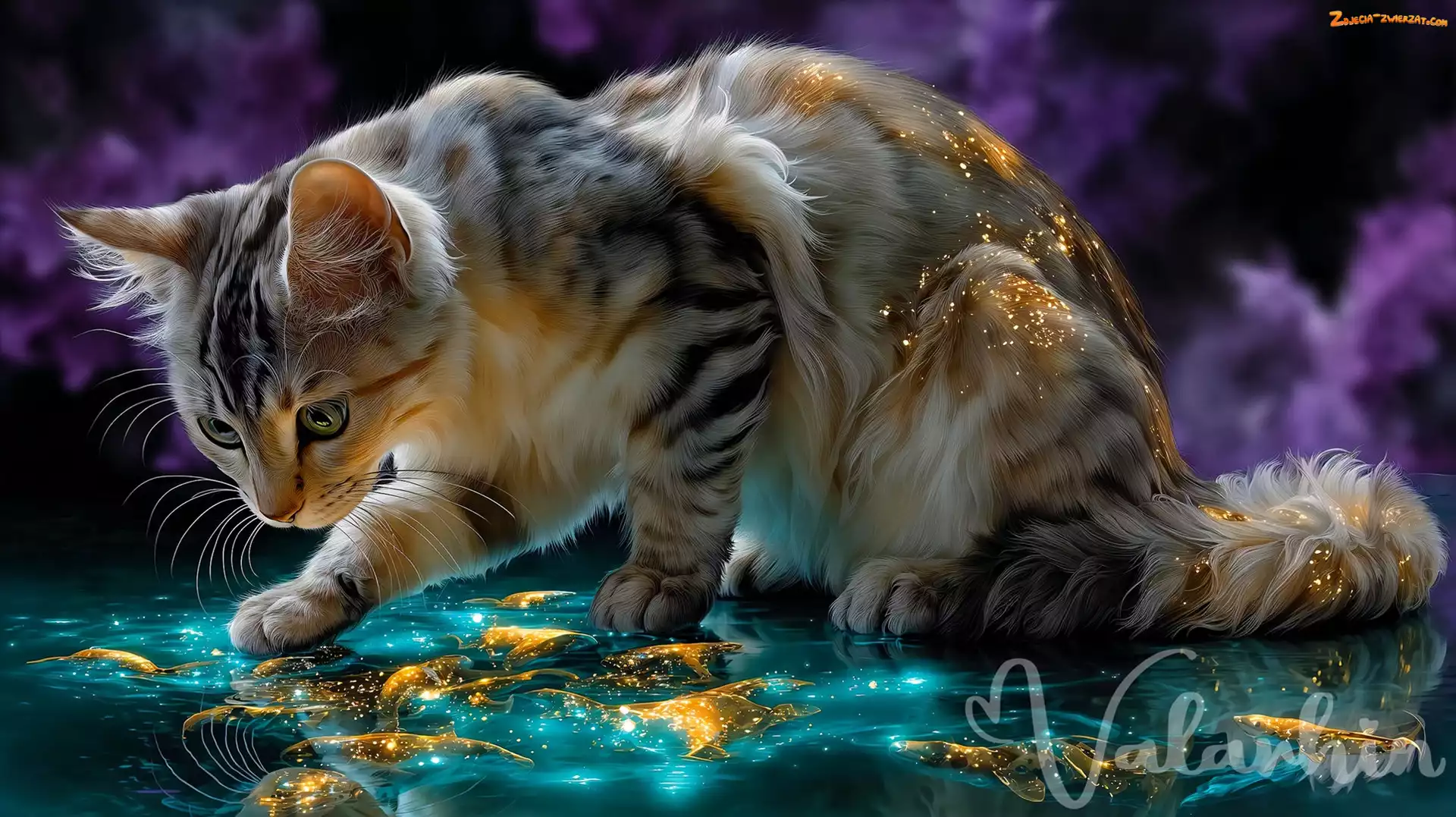 Zdjęcie: Kot, Woda, Grafika AI, Ryby
