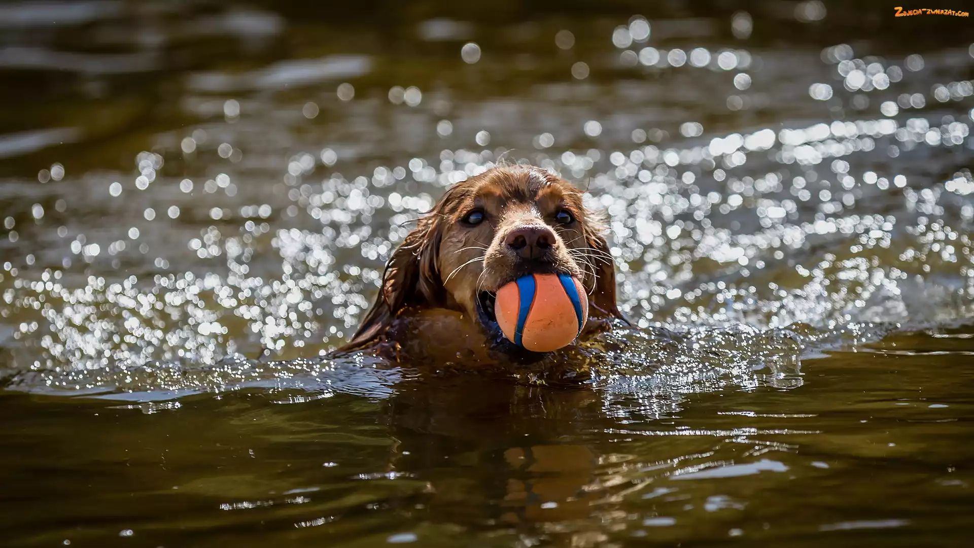Zdjęcie: Woda, Piłka, Pies, Płynący, Mordka