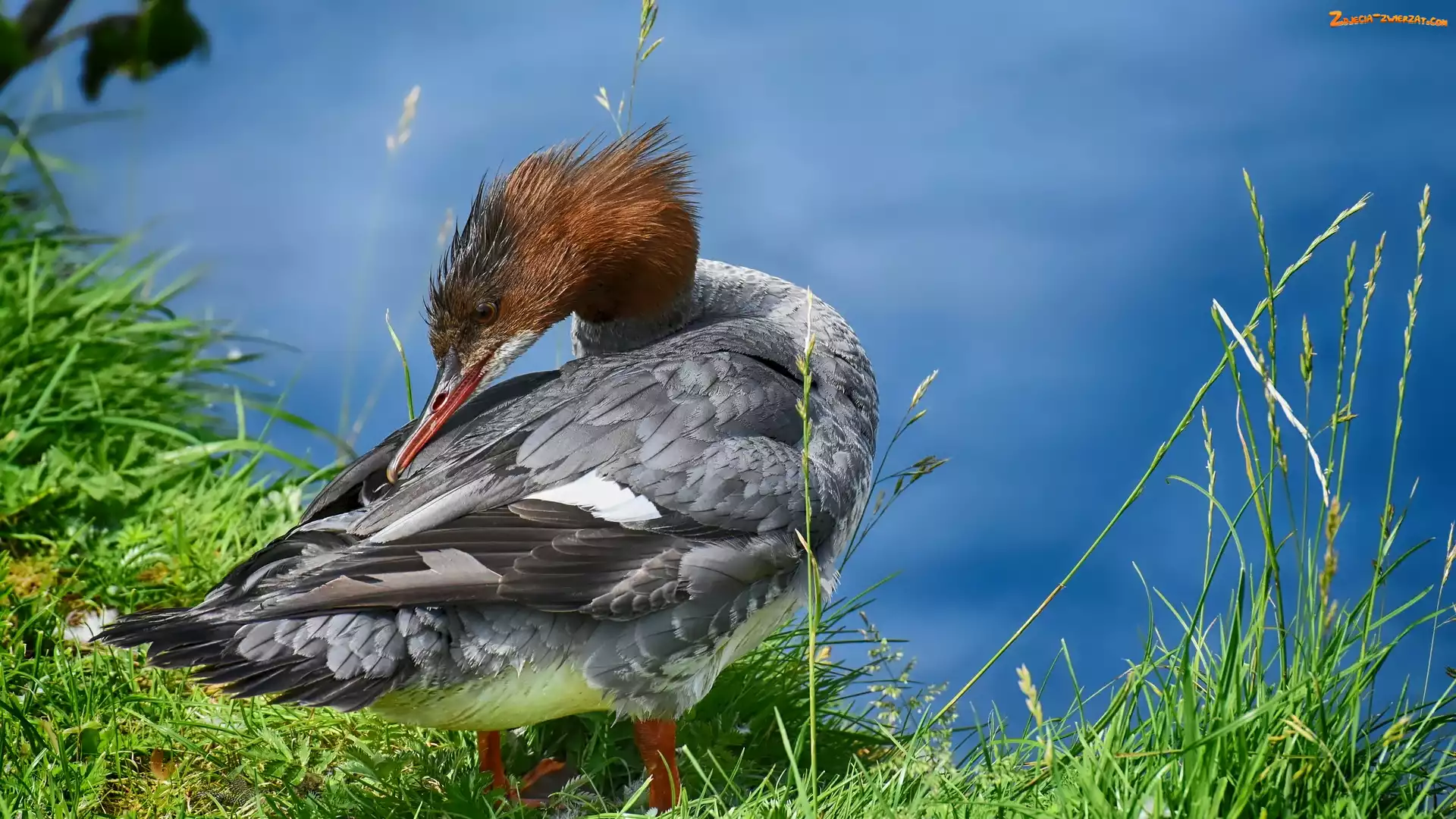 Zdjęcie: Woda, Nurogęś, Ptak, Trawa
