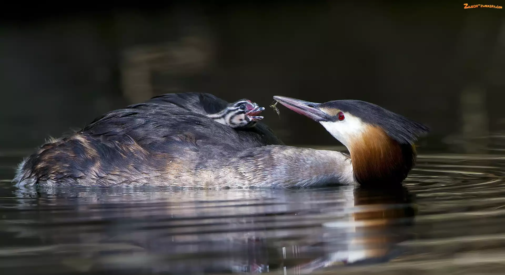 Zdjęcie: Woda, Owad, Perkoz dwuczuby, Ptaki, Pisklę