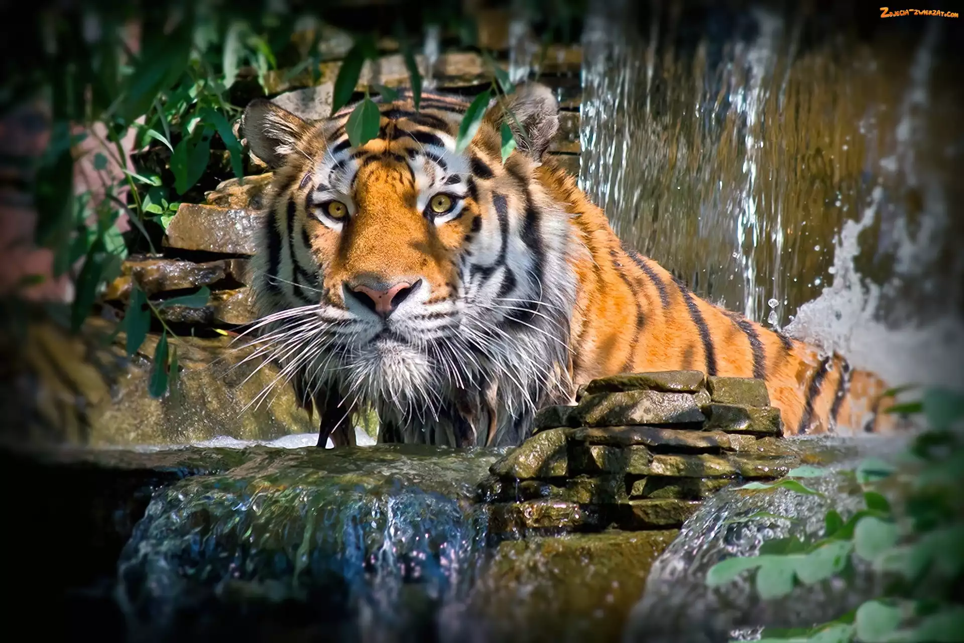Zdjęcie: Woda, Kamienie, Tygrys, Strumień