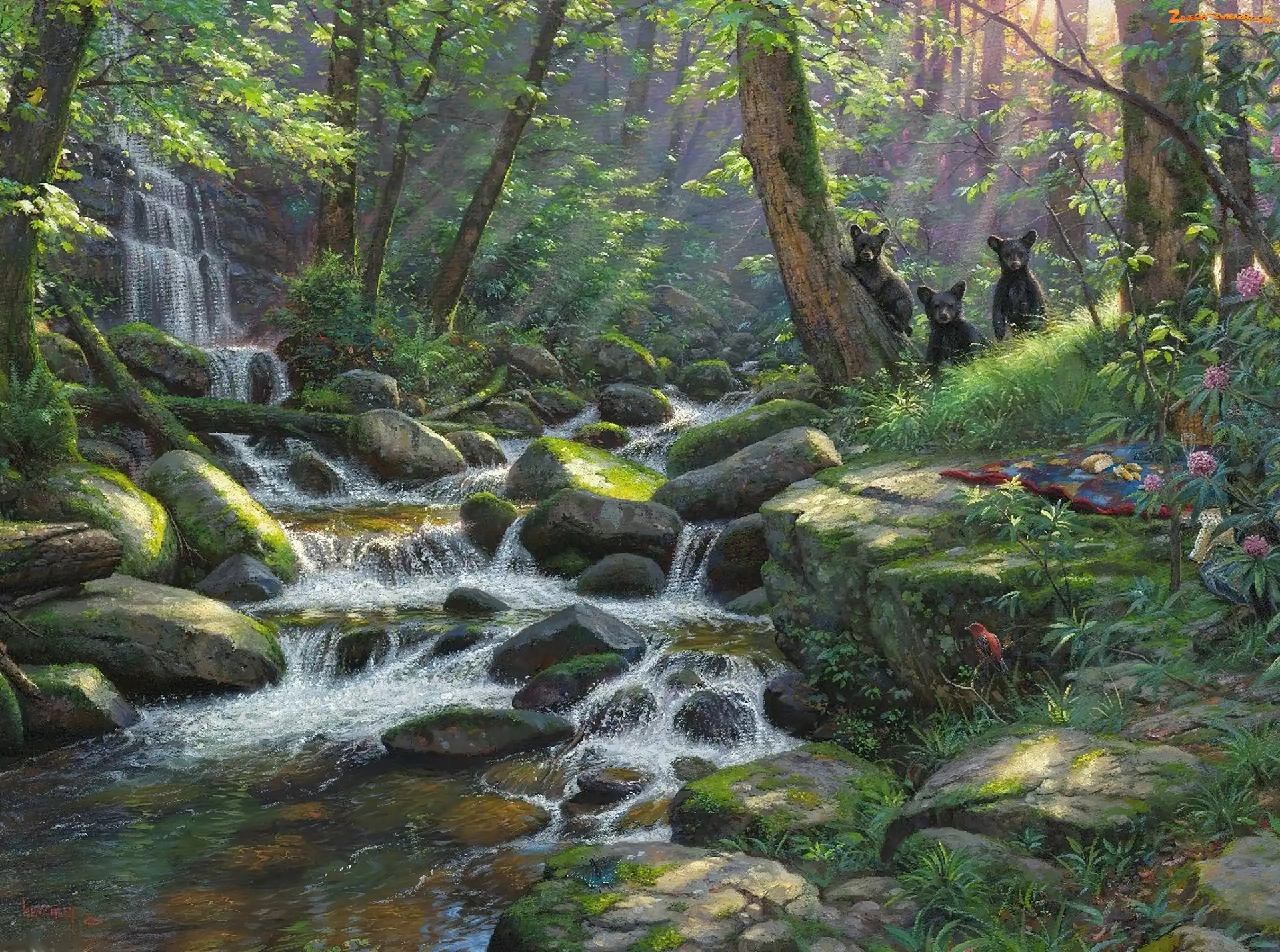 Zdjęcie: Wodospad, Las, Niedźwiadki, Trzy, Rzeka, Kamienie