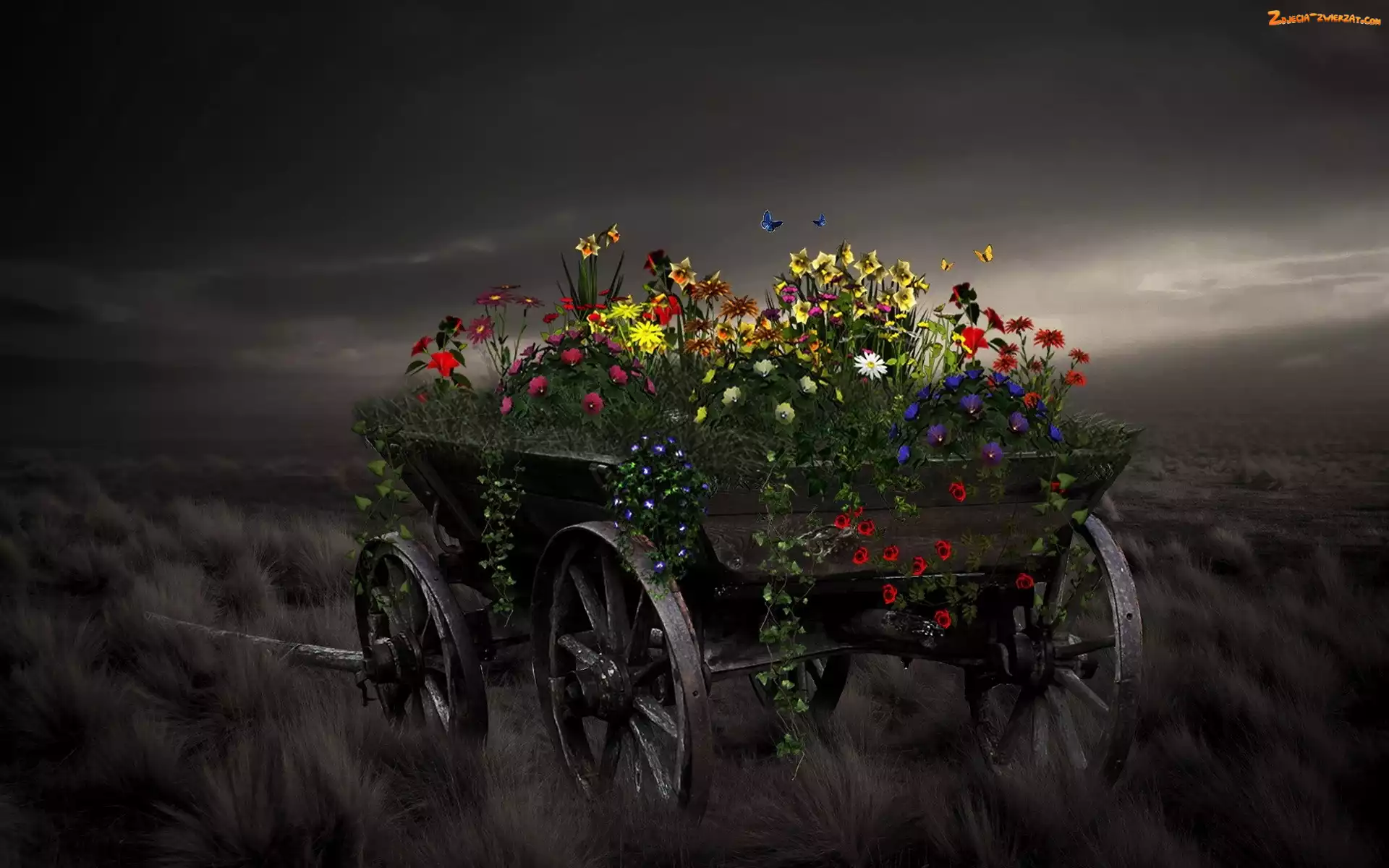 Zdjęcie: Motyle, Wóz, Kwiaty
