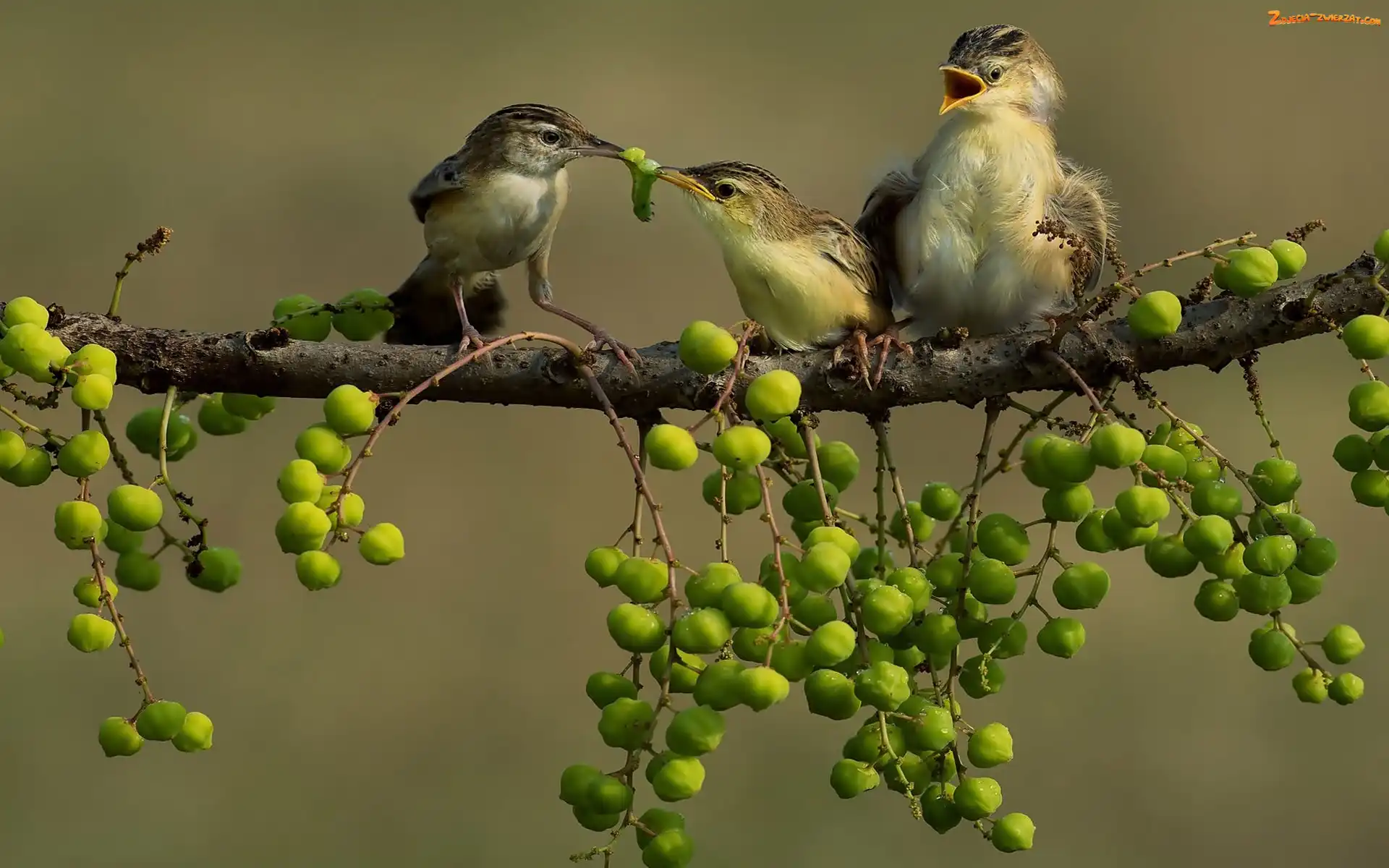 Zdjęcie: Wróble, Roślinki, Ptaki, Gałązka