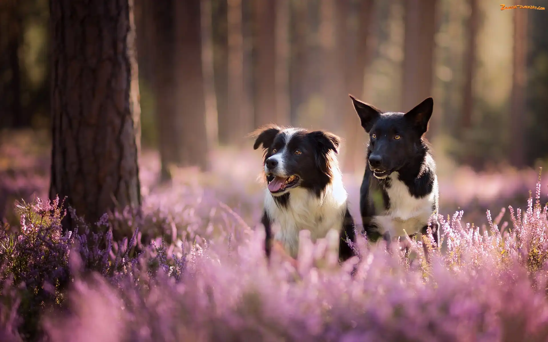 Zdjęcie: Wrzos, Las, Psy, Dwa, Border collie