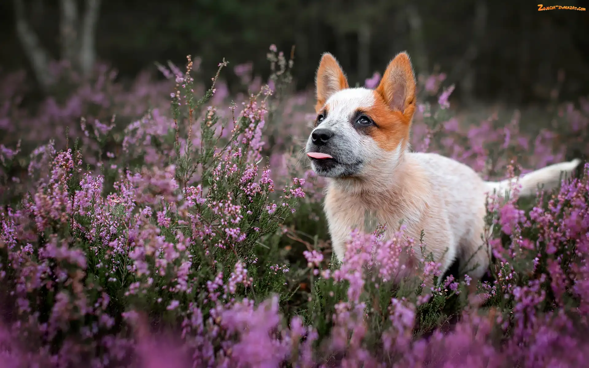 Zdjęcie: Wrzos, Kwiaty, Szczeniak, Pies, Jęzor