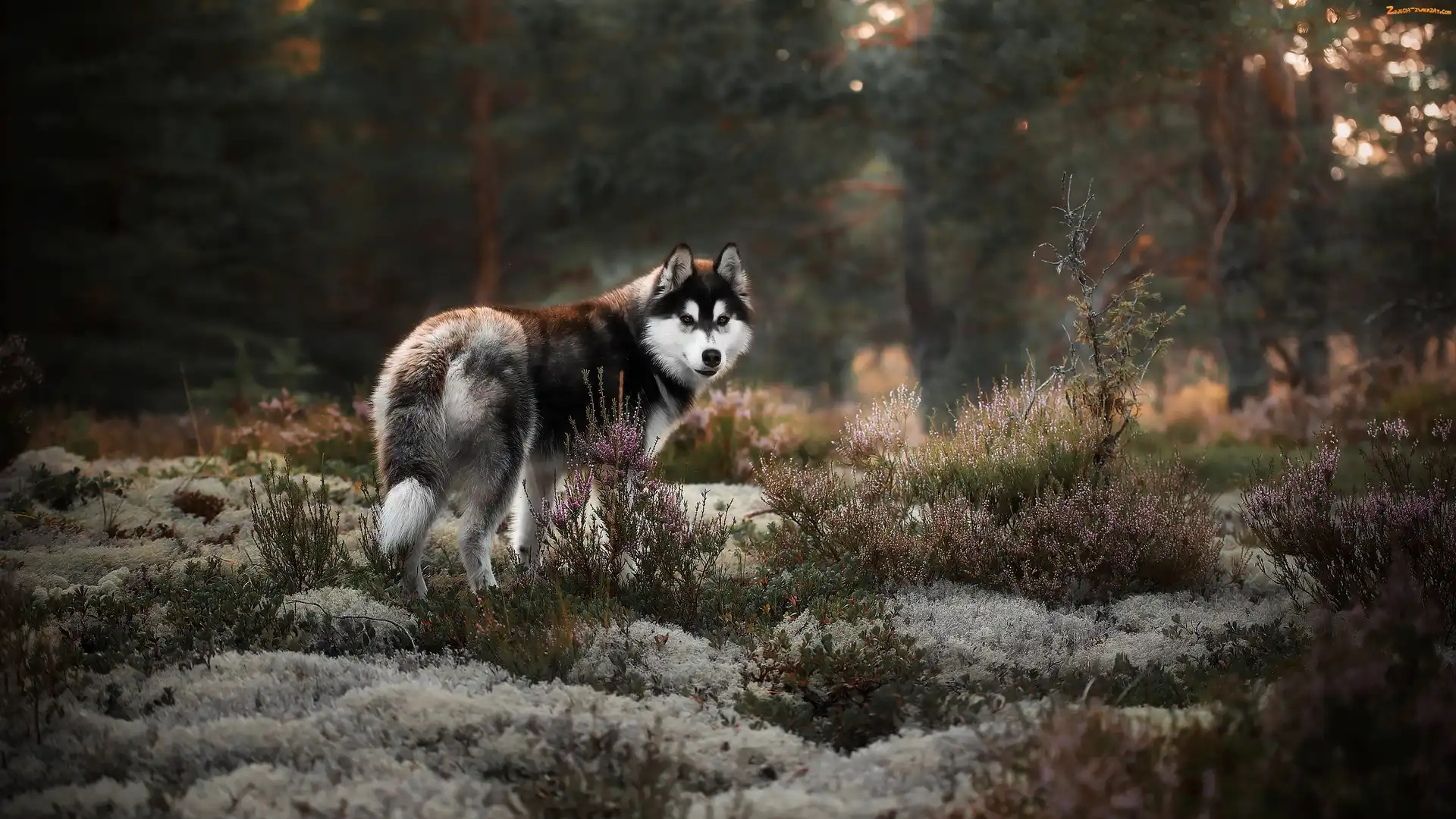 Zdjęcie: Wrzosy, Pies, Alaskan malamute
