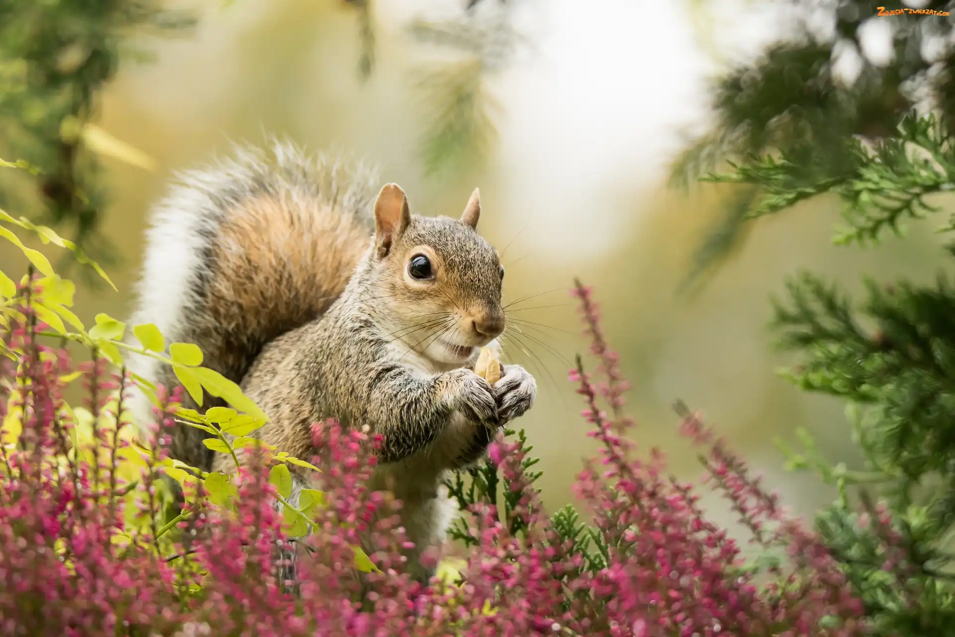Zdjęcie: Wrzosy, Światło, Wiewiórka, Drzewo