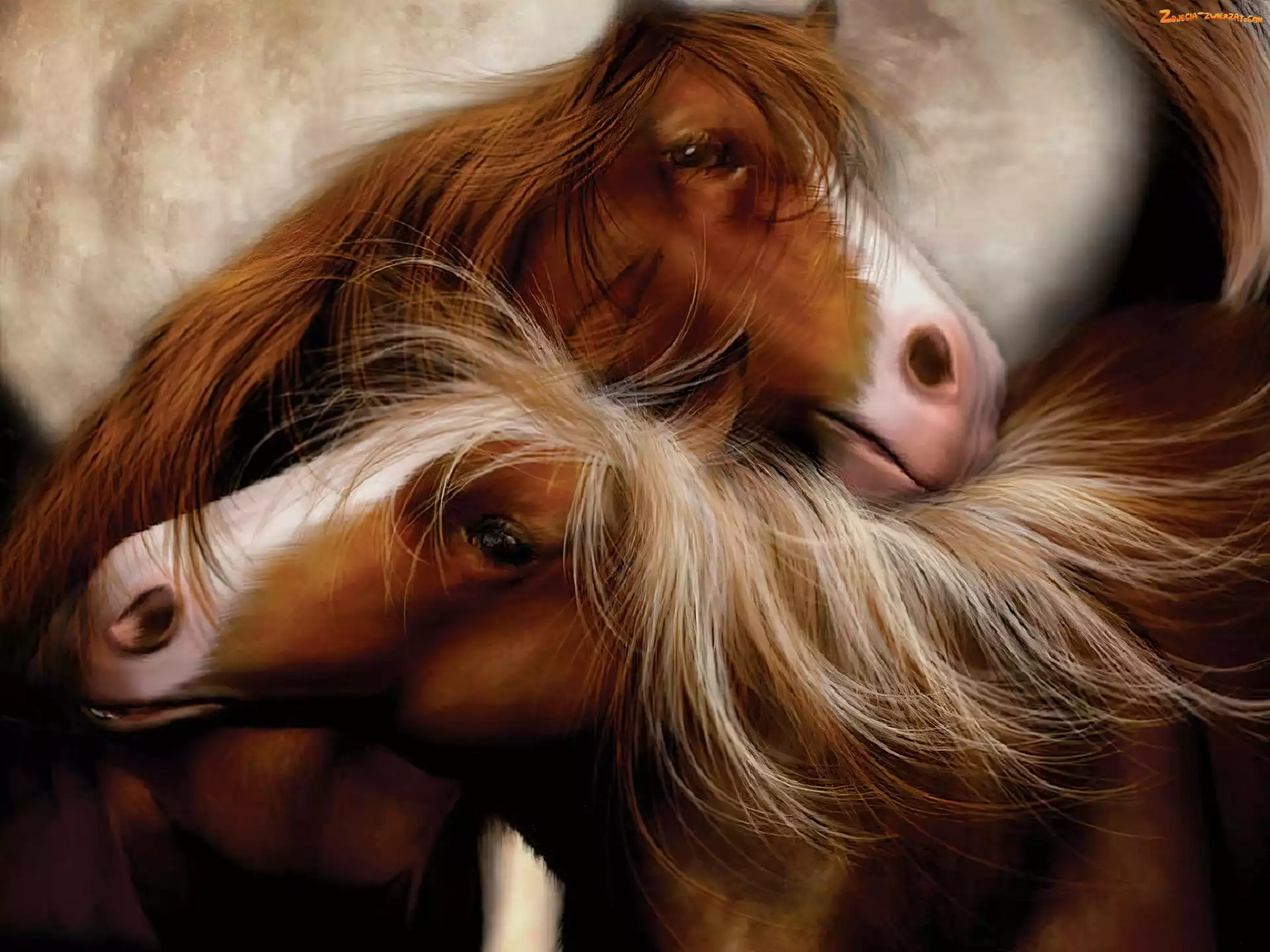Zdjęcie: Wtulone, Art, Dwa, Konie