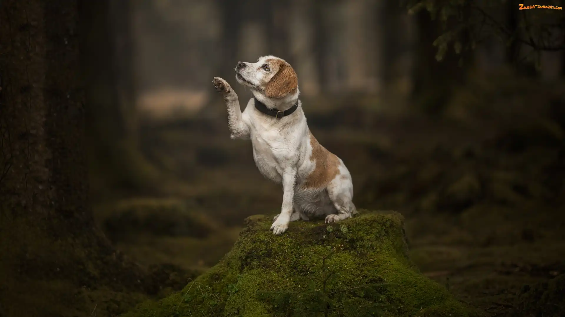 Zdjęcie: Las, Wyciągnięta, Pies, Pień, Mech, Beagle, Łapka