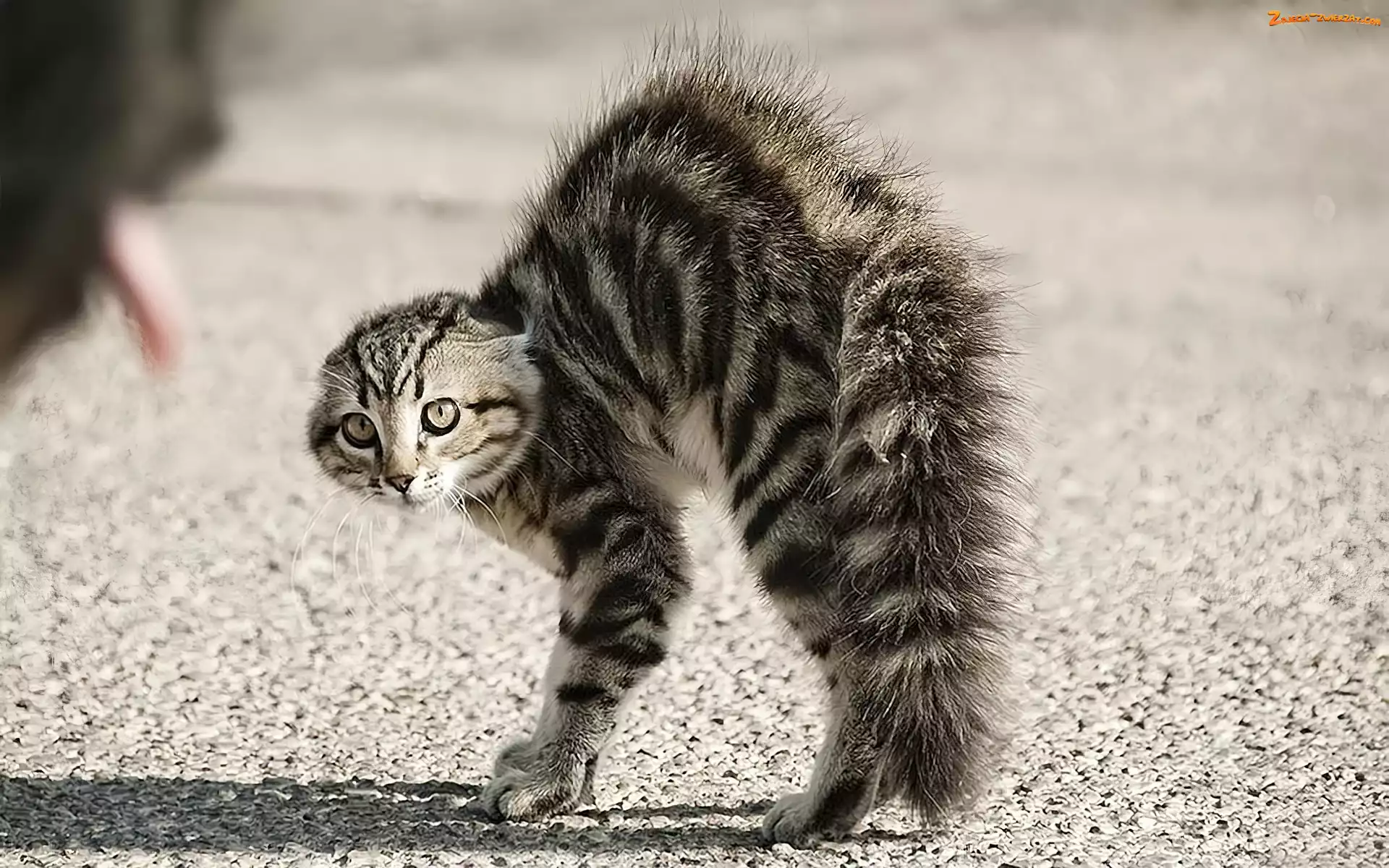 Zdjęcie: Wystraszony, Dachowiec, Kot, Agresywny