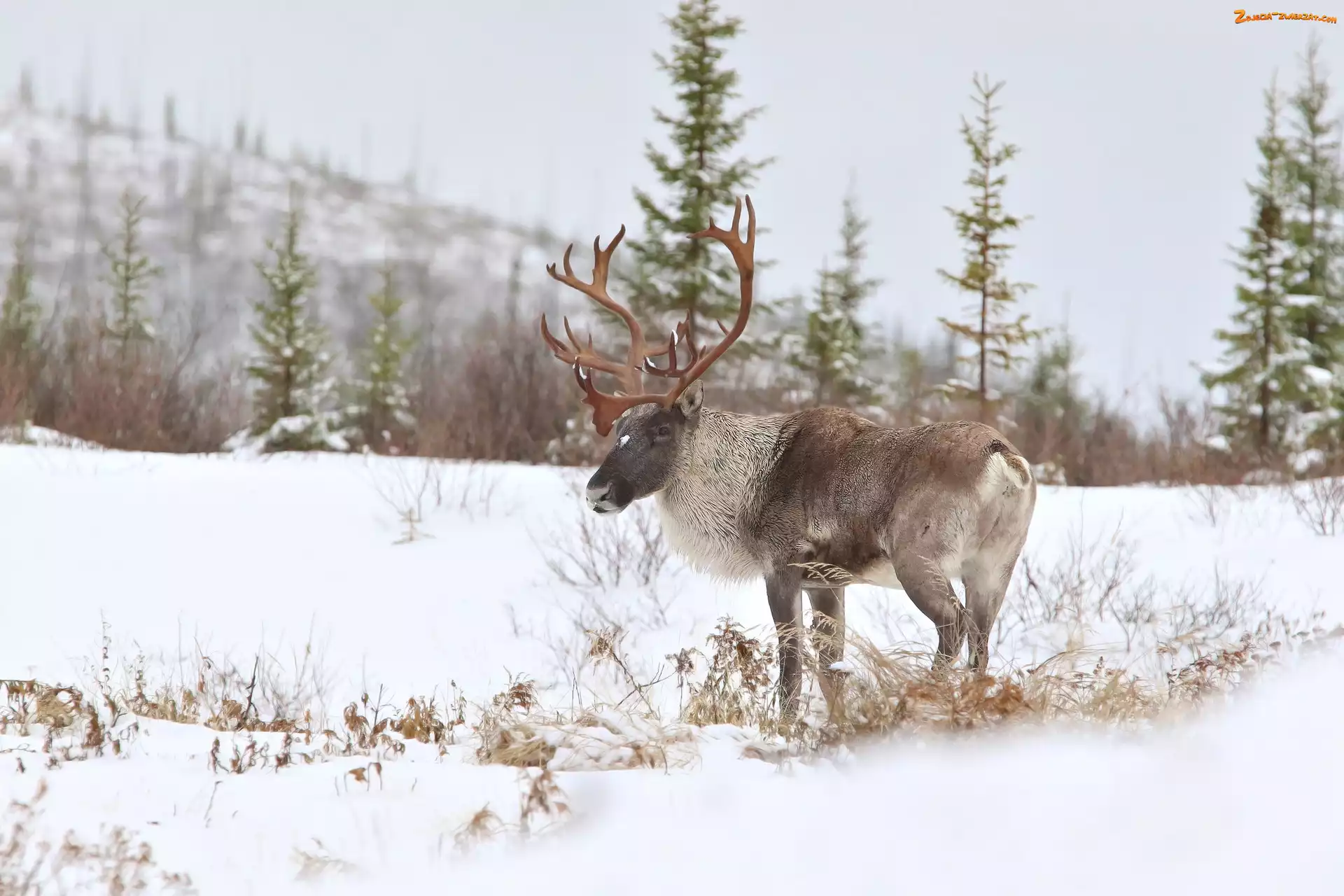 Zdjęcie: Wzgórze, Świerki, Poroże, Renifer, Zima