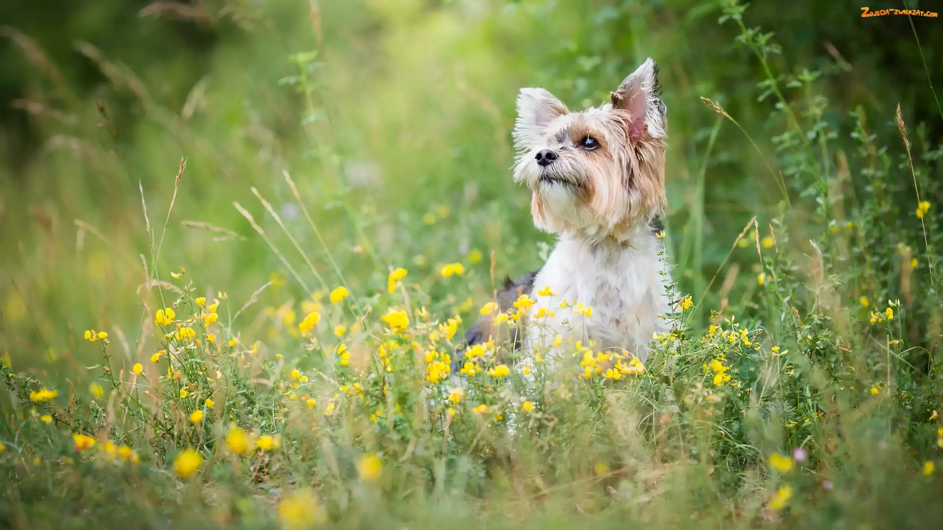 Zdjęcie: Yorkshire terrier, Kwiaty, Pies, Żółte