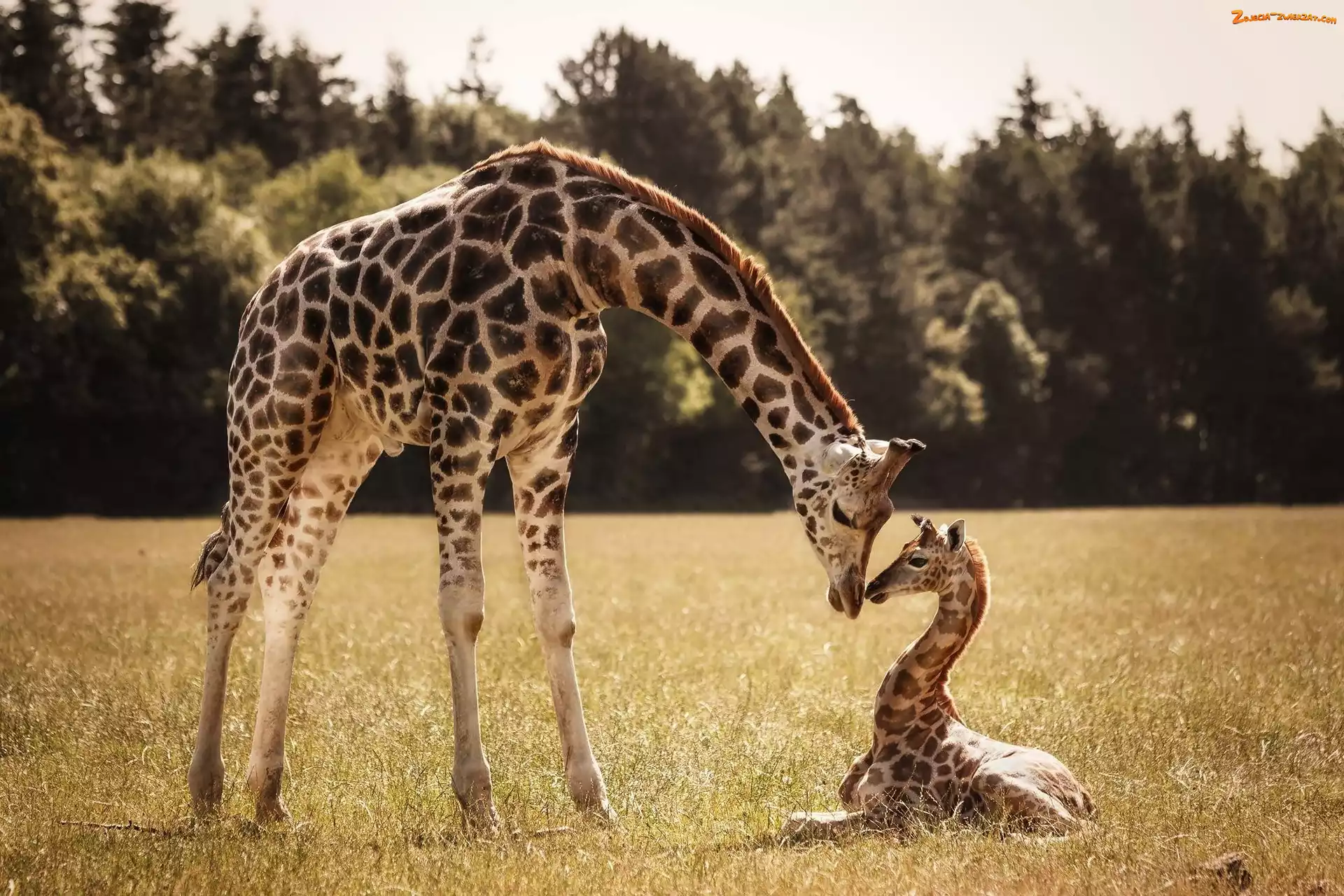 Las, Z, Żyrafa, Żyrafą, Polana, Mama, Małą
