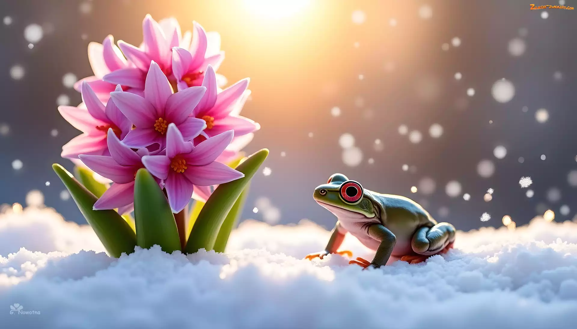Zdjęcie: Śnieg, Żaba, Grafika, Różowy, Hiacynt
