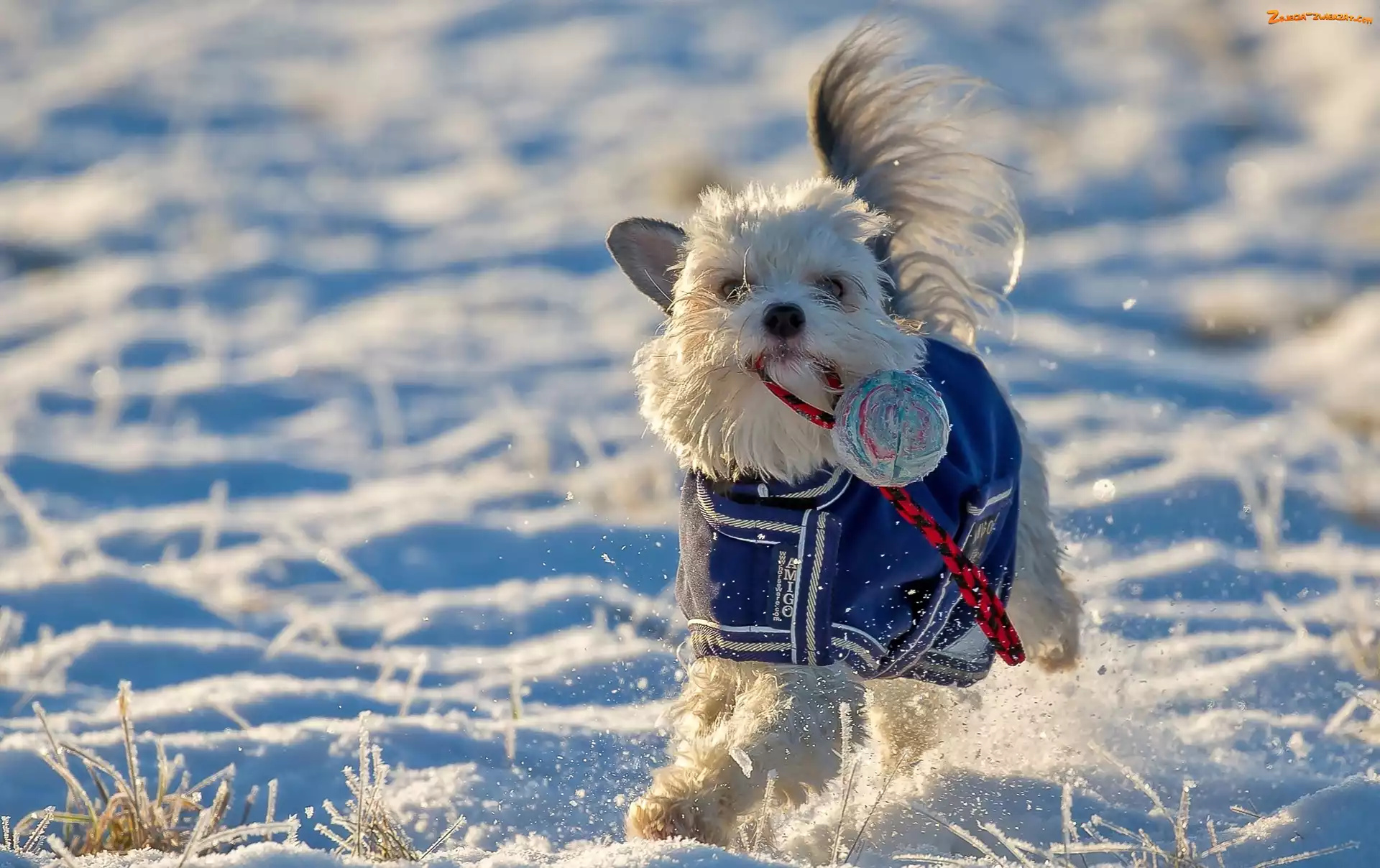 Zdjęcie: Zabawa, Śnieg, Szczeniak, Piłka