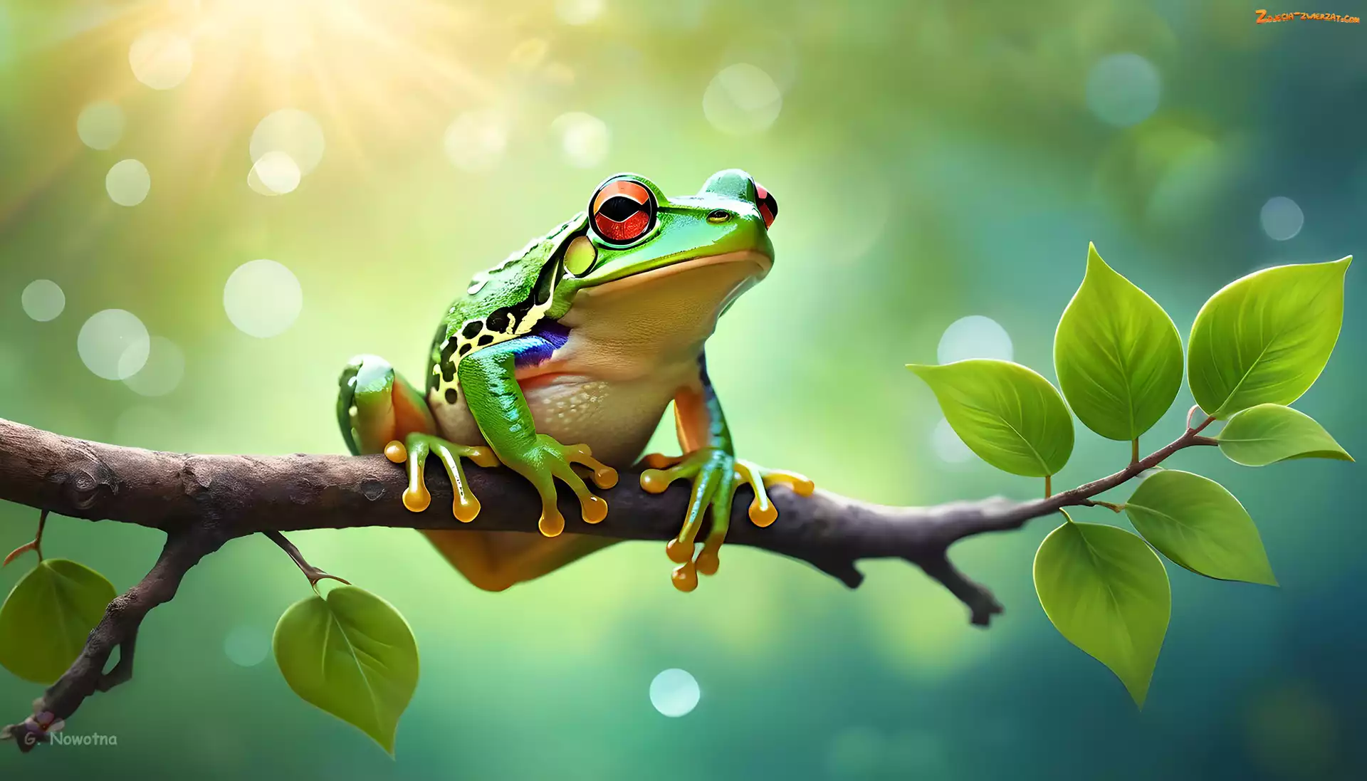 Zdjęcie: Grafika, Żaba, Zielona, Żabka, Gałązka, Liście