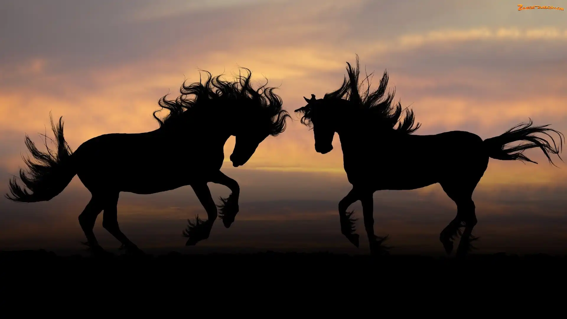 Zdjęcie: Zachód słońca, Dwa, Konie