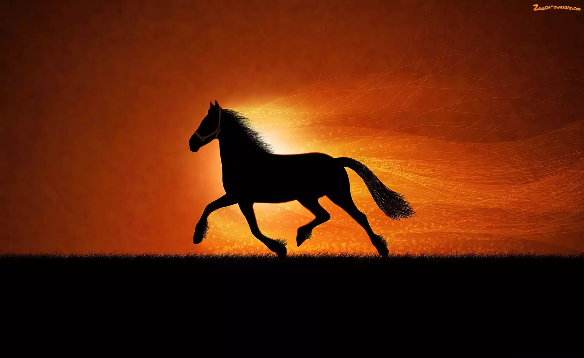 Zdjęcie: Zachód, Koń, Grafika, Słońca
