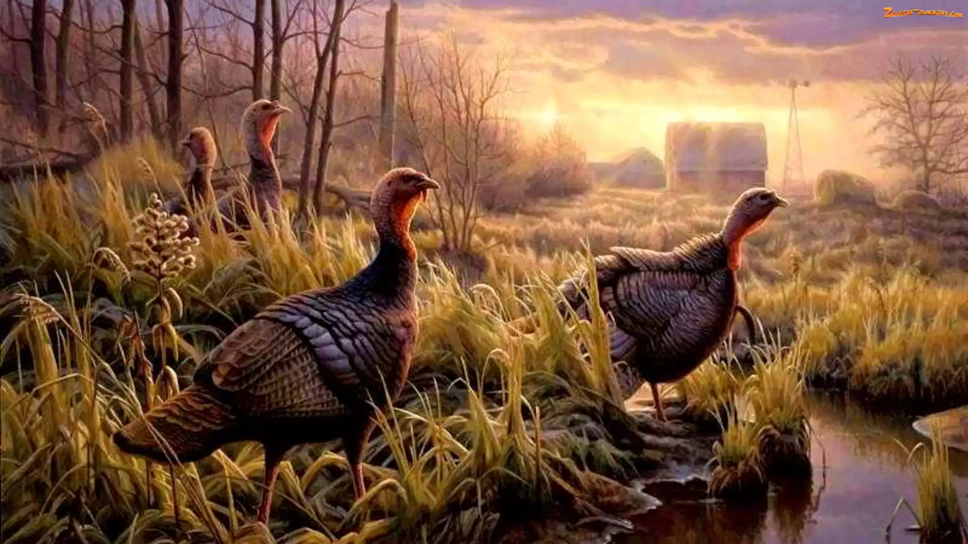 Zachód, Woda, Indyki, Słońca