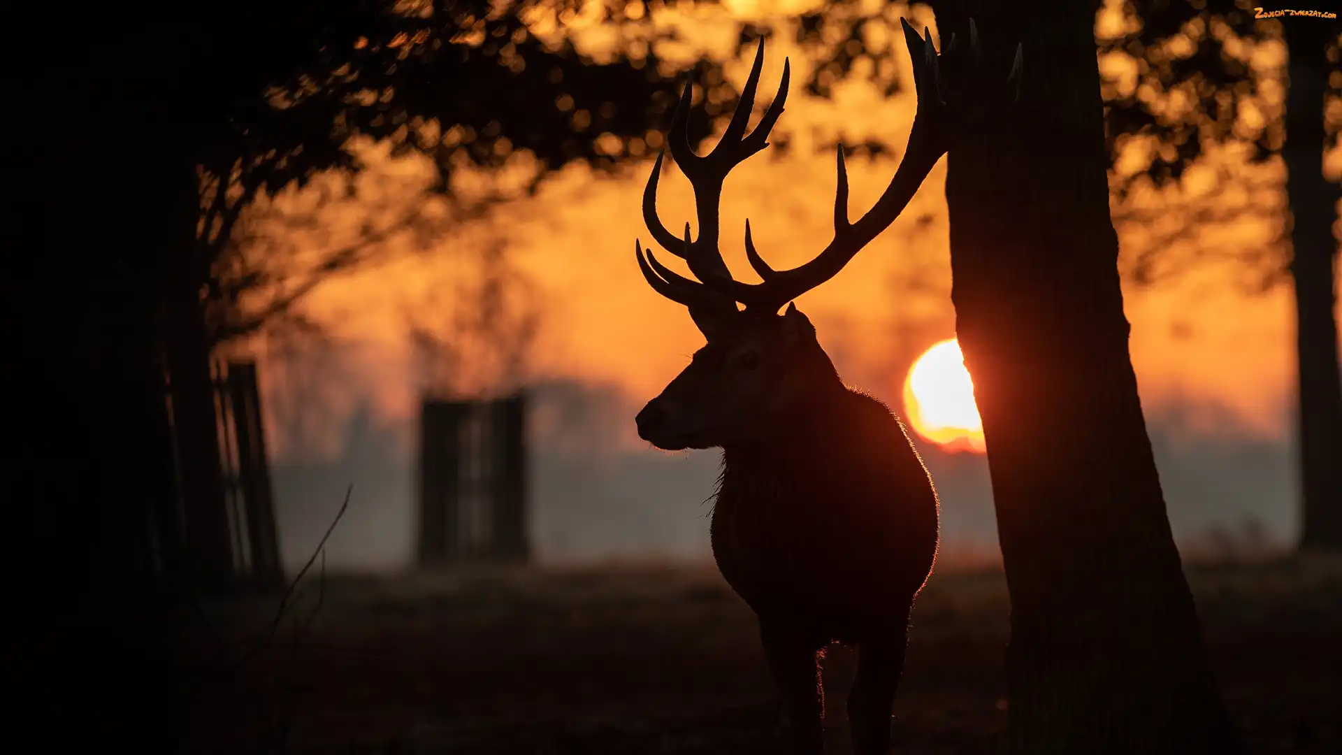 Zdjęcie: Zachód słońca, Jeleń, Drzewo
