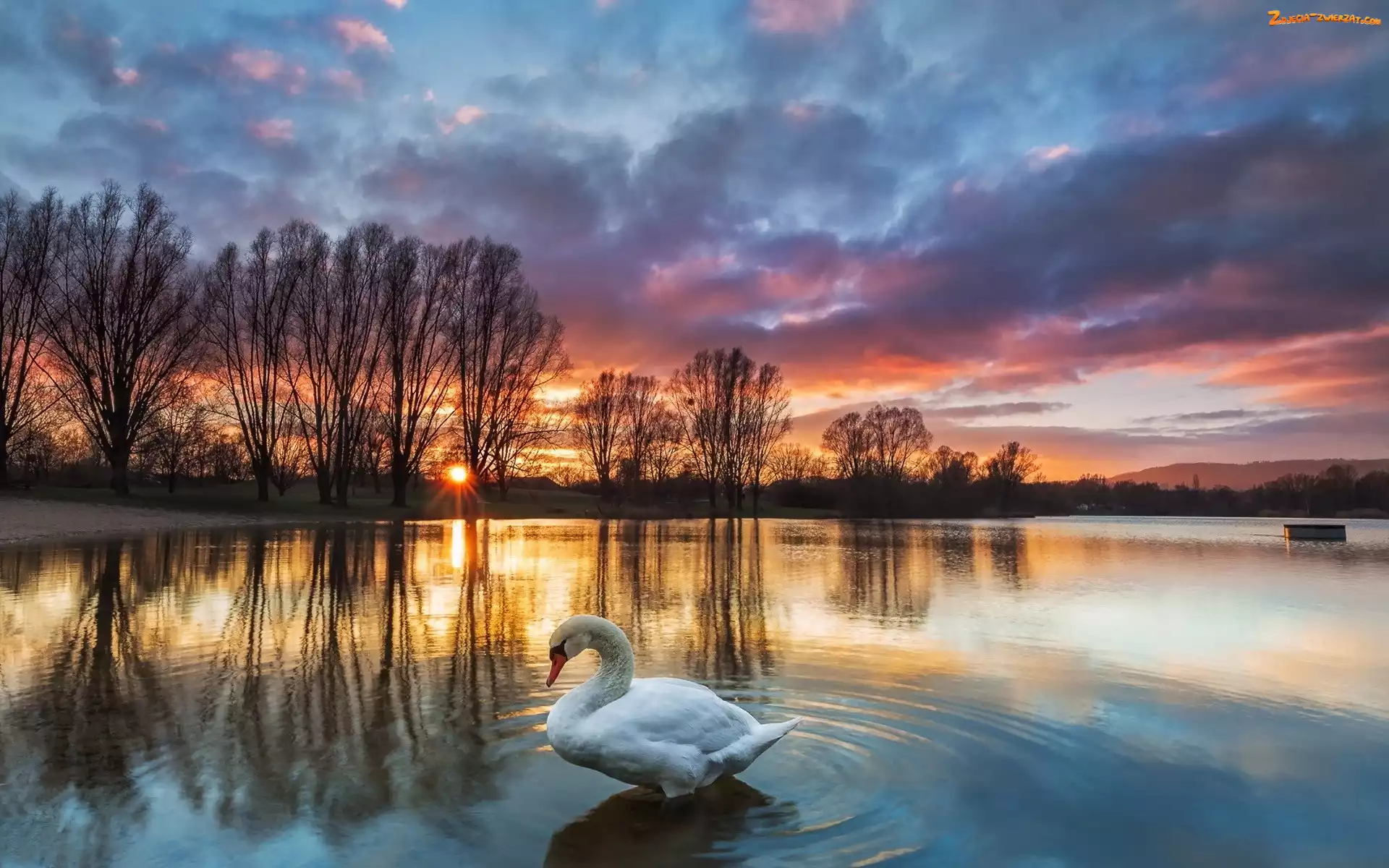 Zachód słońca, Jezioro, Łabędź