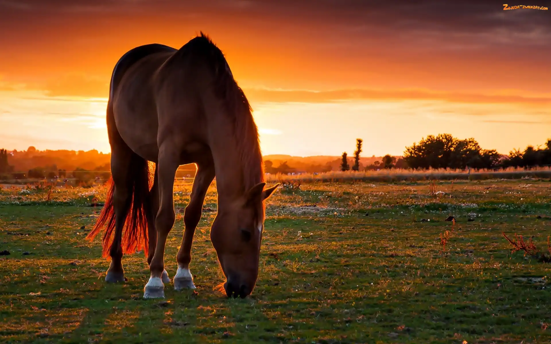 Zachód Słońca, Koń, Łąka