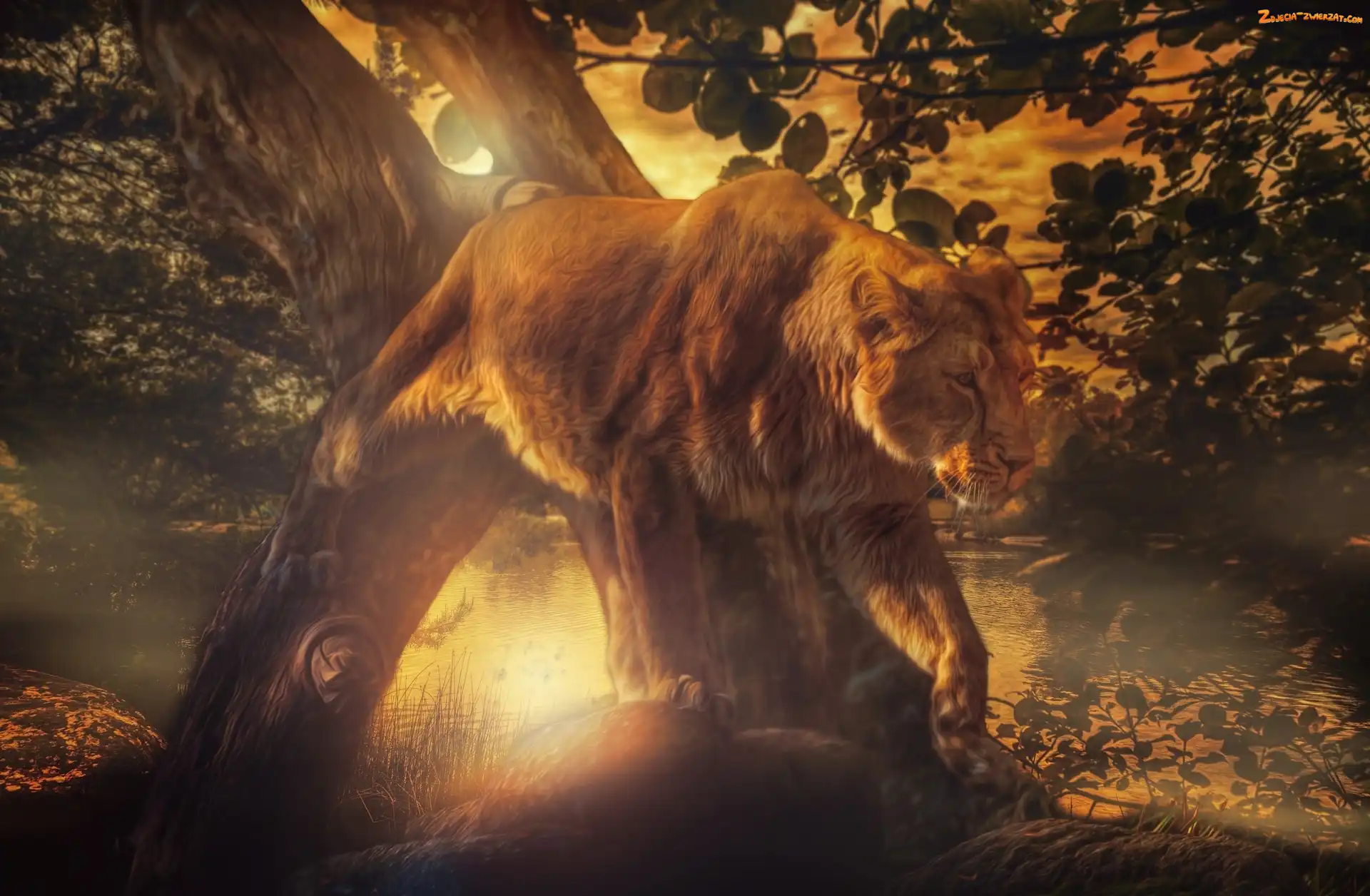Zdjęcie: Zachód słońca, Lew, Drzewa
