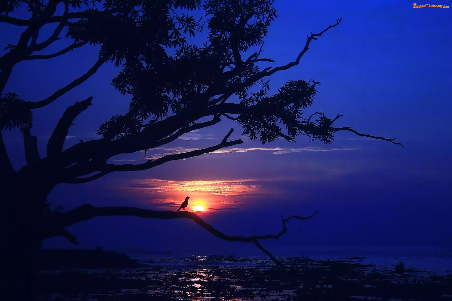 Zdjęcie: Zachód Słońca, Morze, Drzewo, Ptak, Niebo