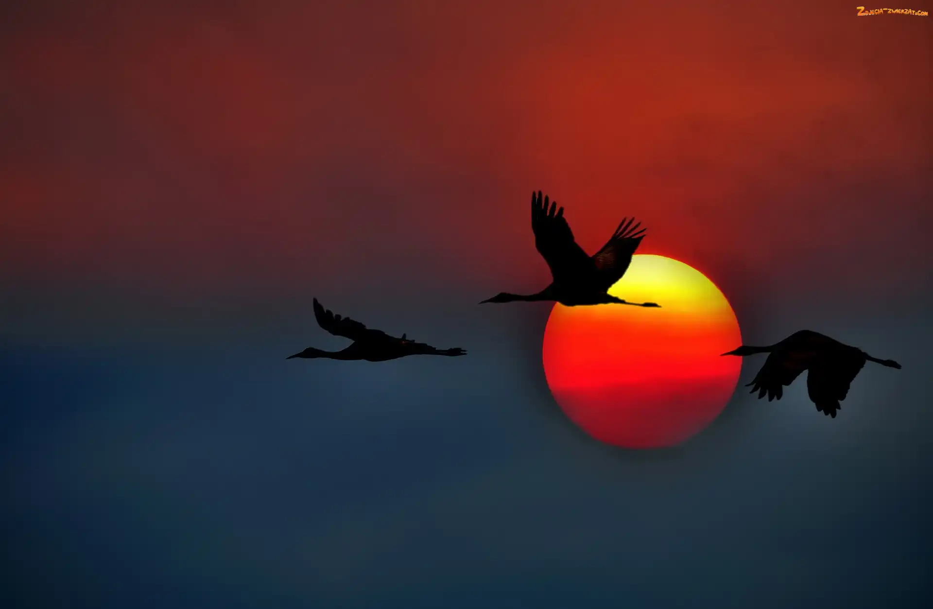 Ptaki, Zachód, Słońca