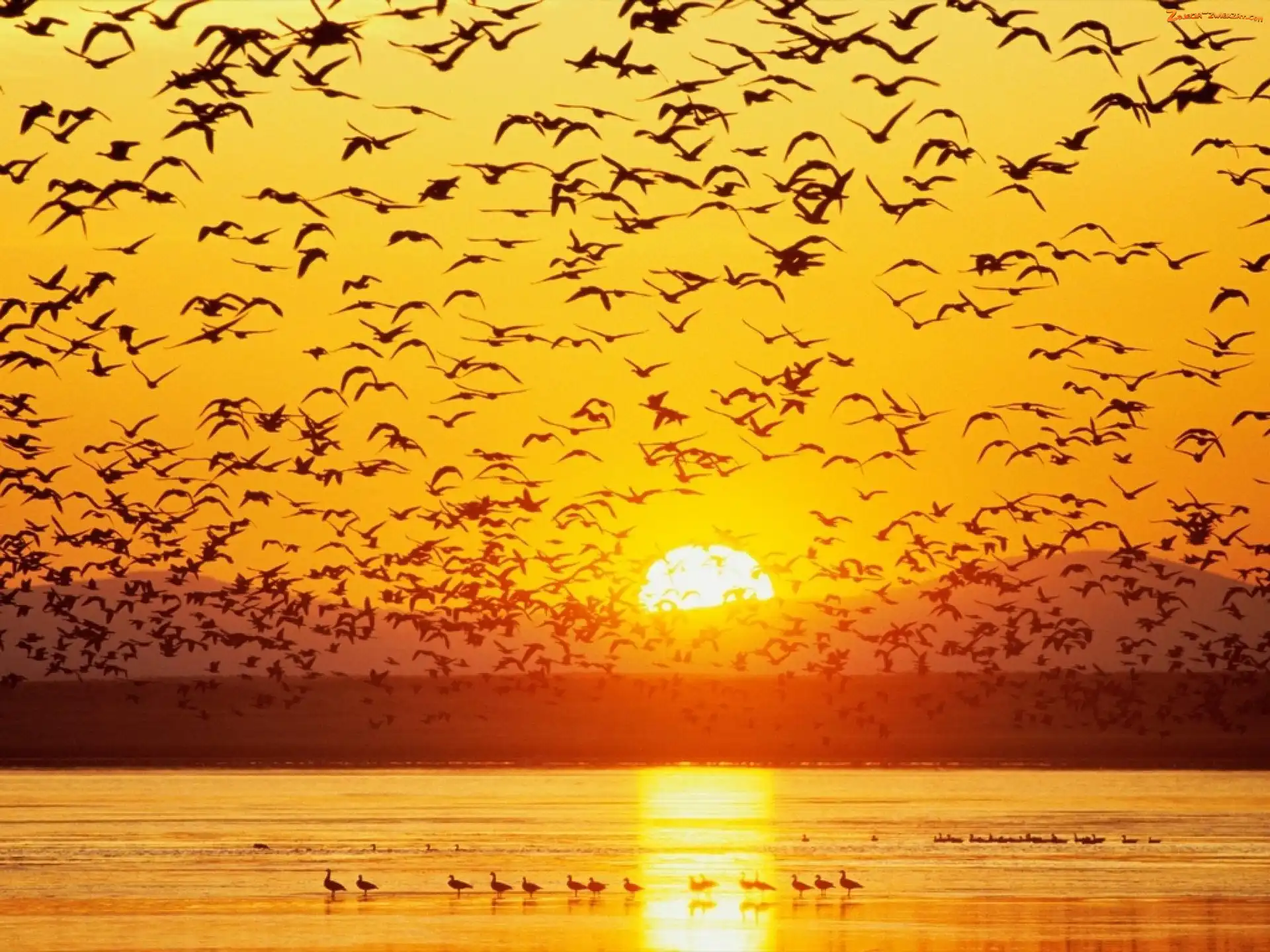 Ptaki, Zachód, Słońca