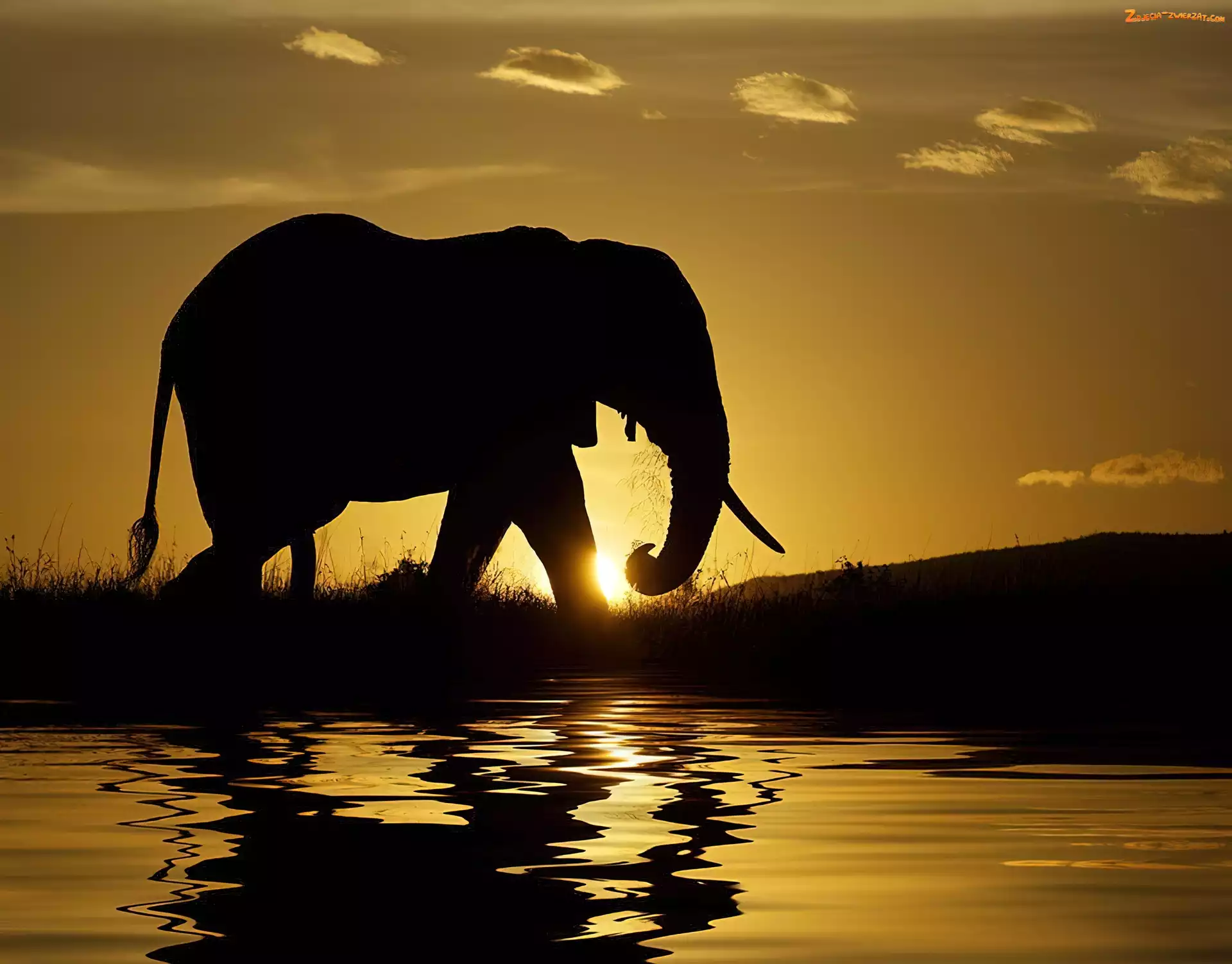 Zachód Słońca, Słoń, Woda