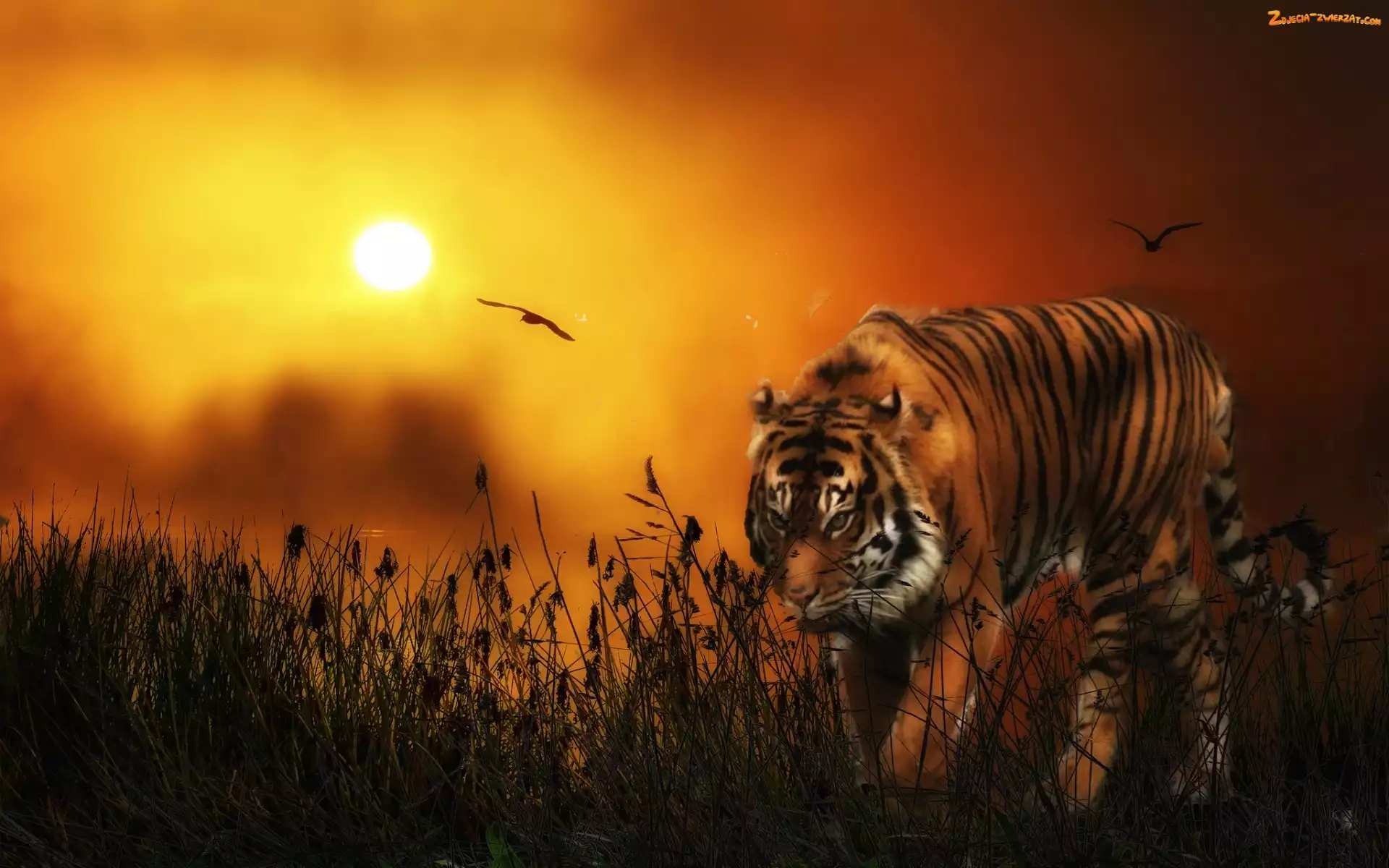 Zdjęcie: Zachód, Polowanie, Tygrys, Słońca