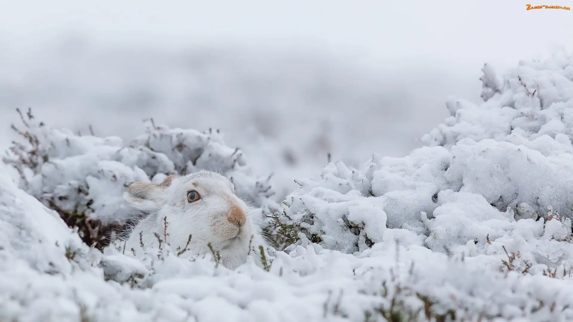 Zdjęcie: Zając, Rośliny, Biały, Śnieg