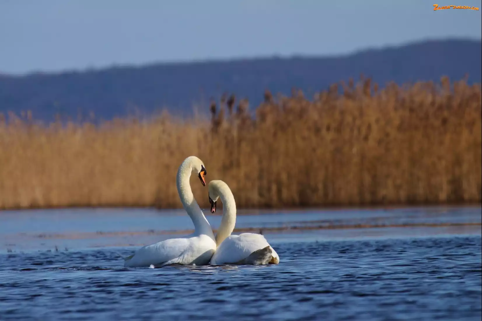 Łabędzie, Trzcina, Zakochane, Jezioro