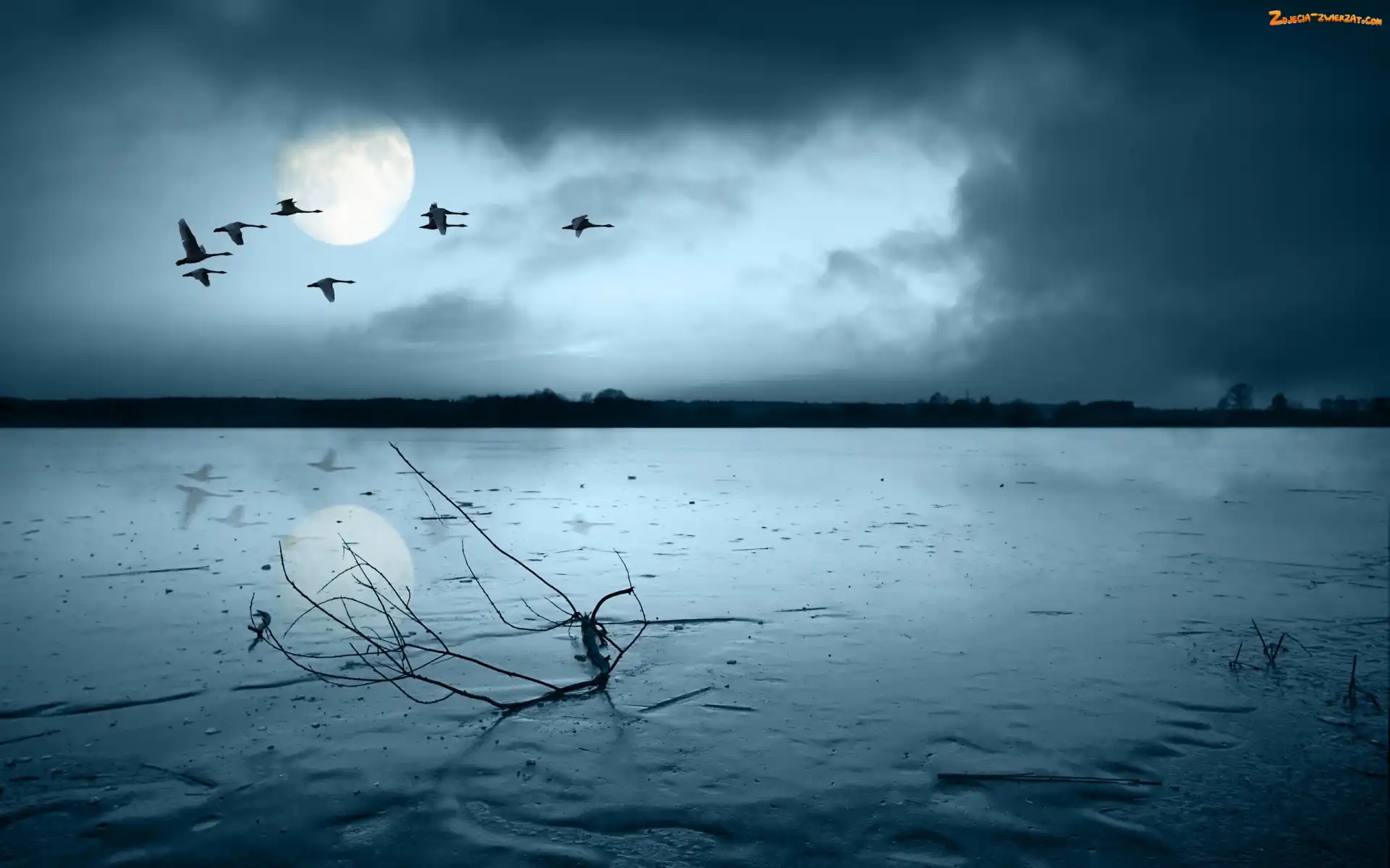 Gęsi, Zamarznięte, Jezioro