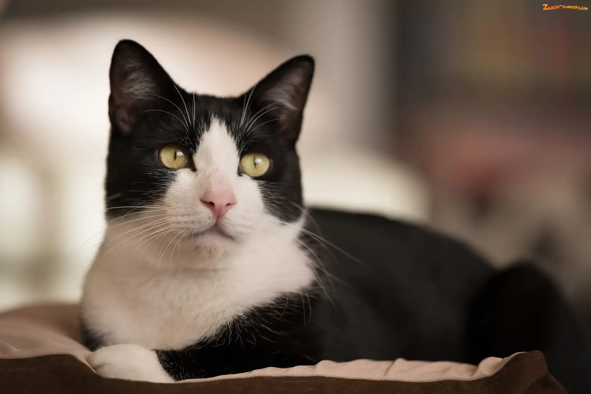 Zdjęcie: Zapatrzony, Kot, Czarno-biały
