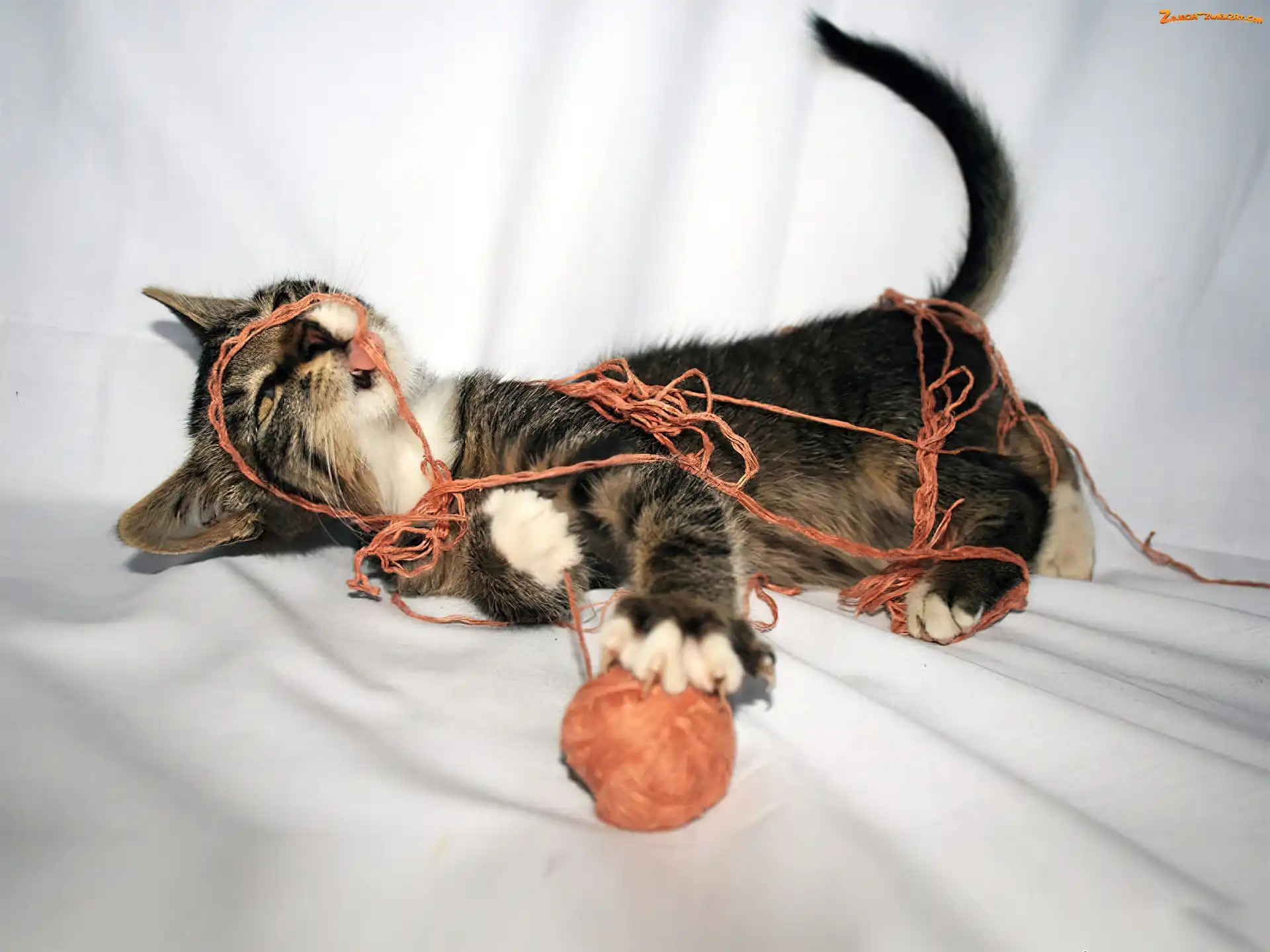 Zdjęcie: Włóczka, Zaplątany, Kot