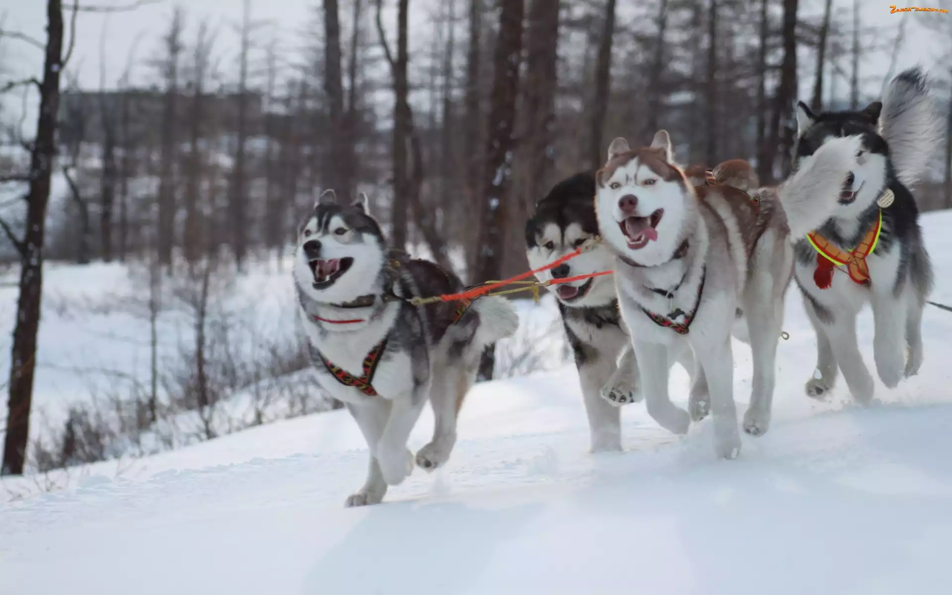 Zdjęcie: Zaprzęg, Zima, Psi, Las