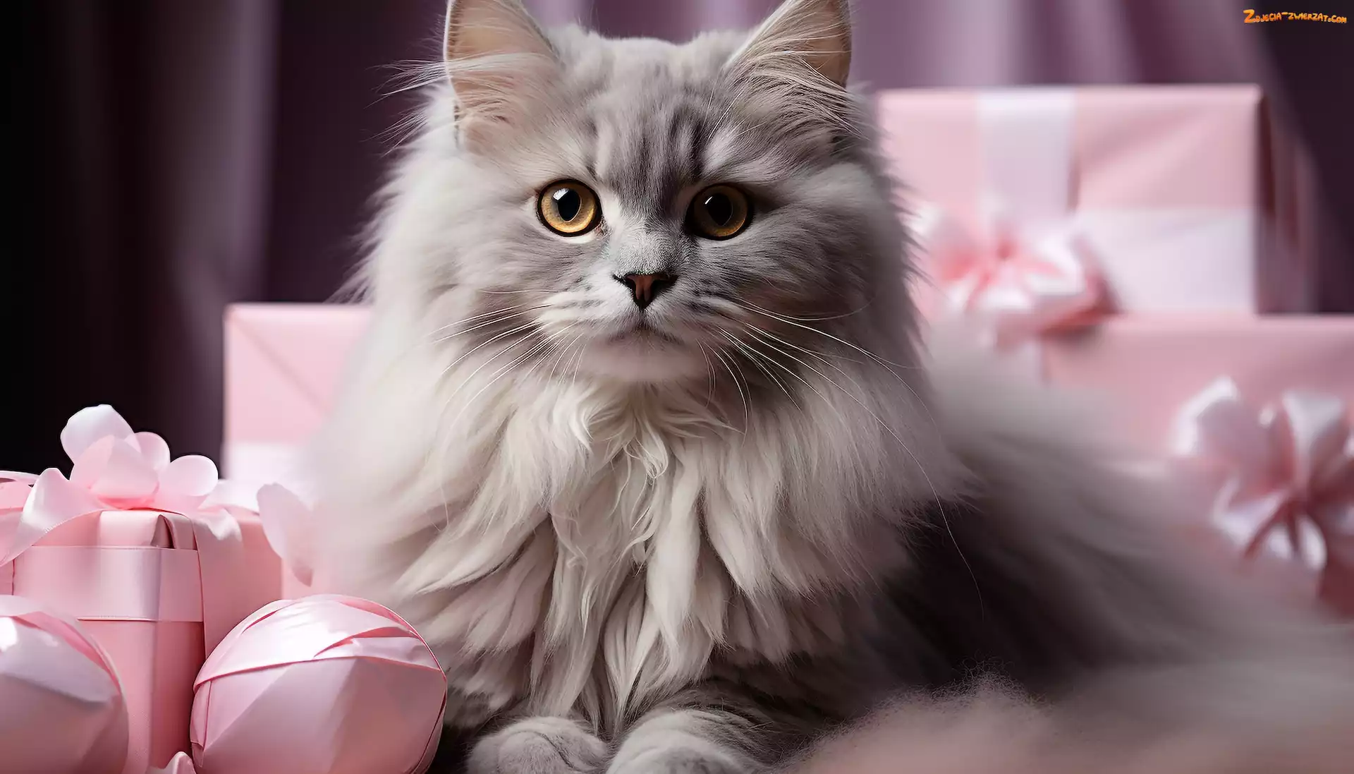Zdjęcie: Kot, Puszysty, Prezenty, Zbliżenie